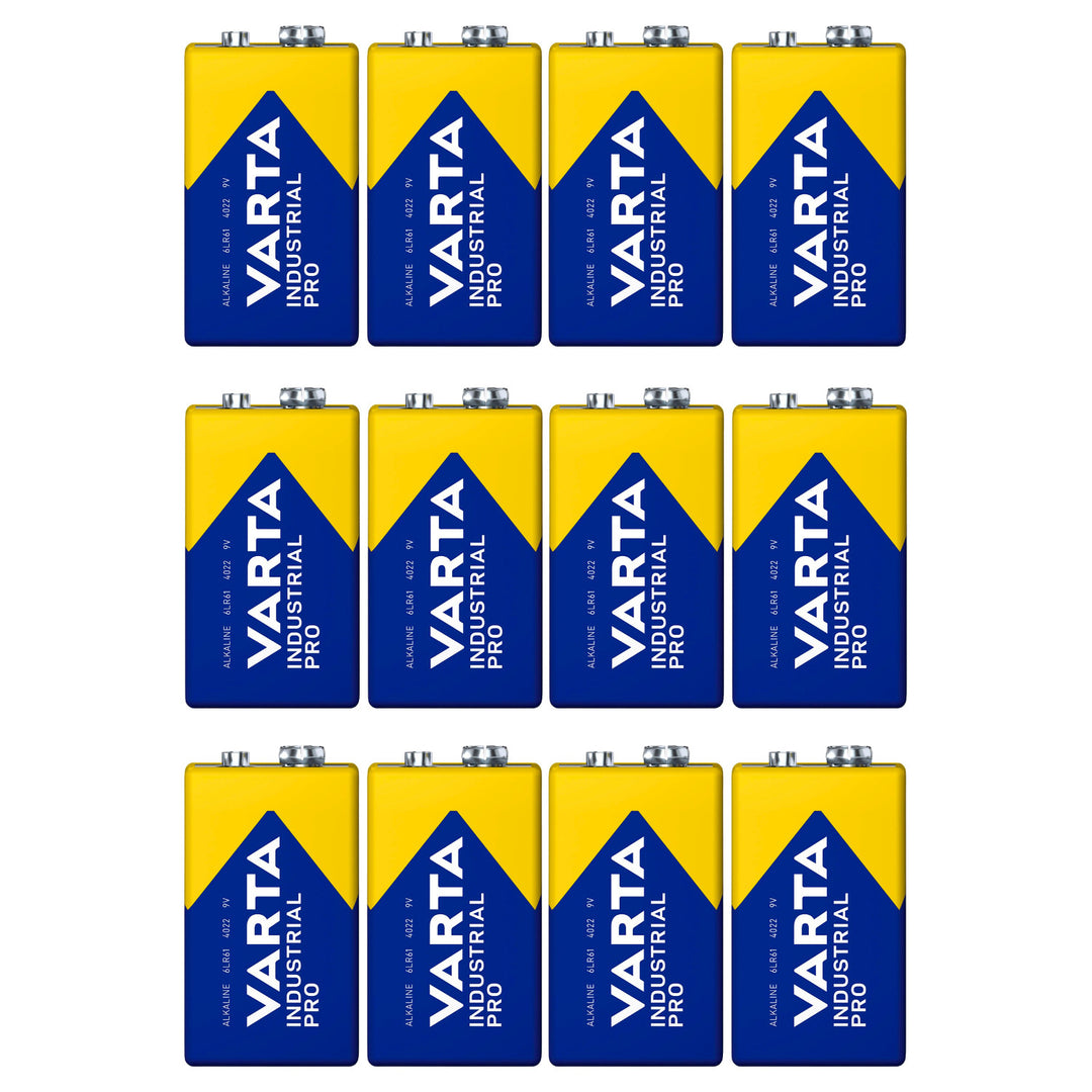 12 batterie R9V R-9 6LR61 9V R-9 alcaline Varta Industrial Pro