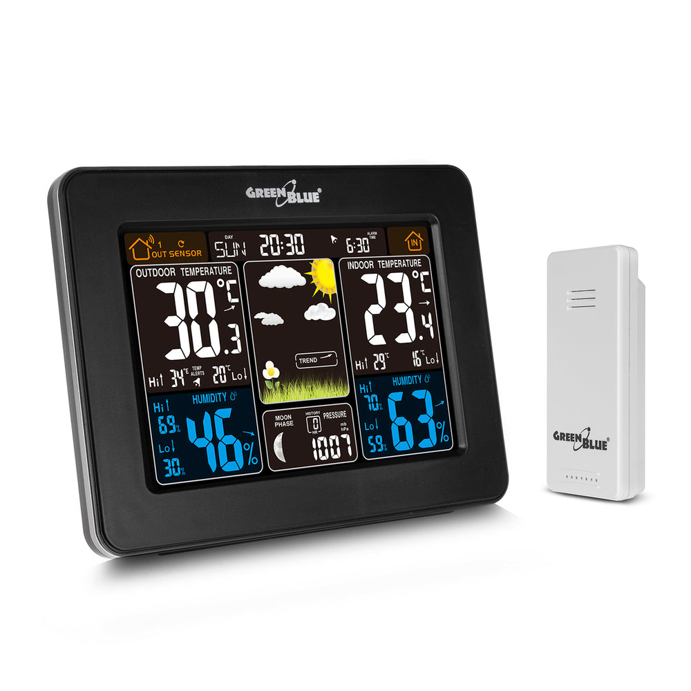 STAZIONE METEOROLOGICA A COLORI WIRELESS WIFI, GreenBlue GB523 DCF FASI LUNARI Il design semplice della Stazione Meteo permette all'oggetto di integrarsi facilmente all'arredamento della tua casa.