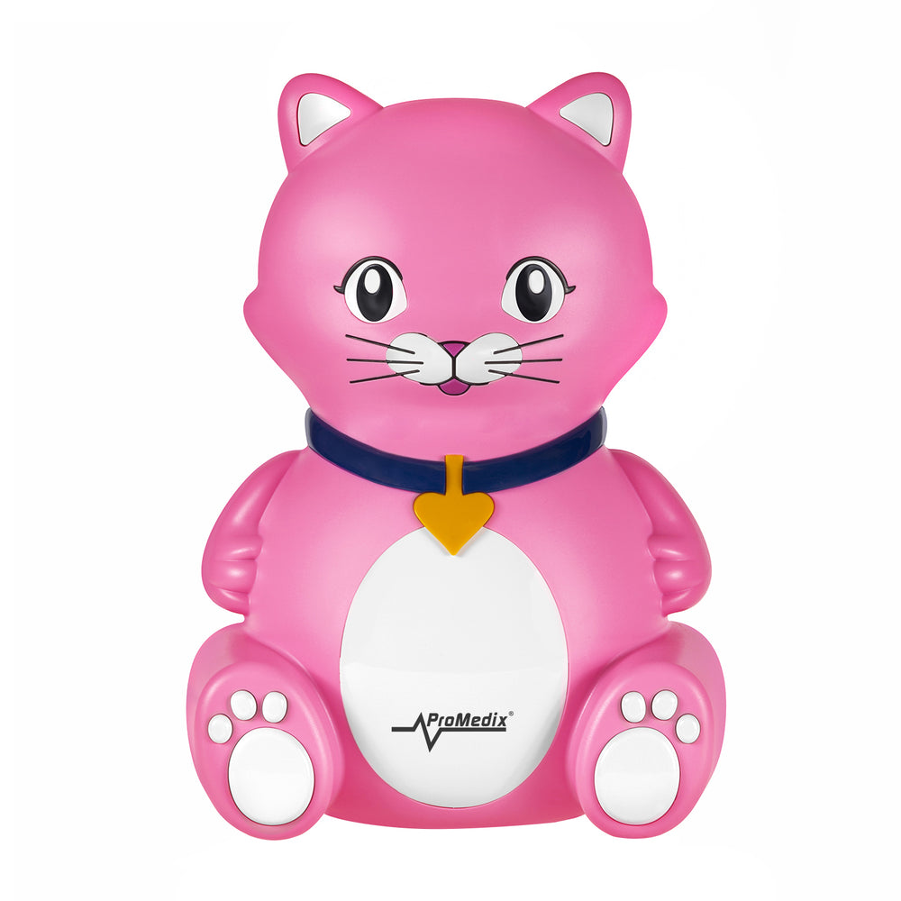 È stato progettato pensando ai più piccoli. La forma dell'inalatore (un gatto) farà amare l'inalazione al bambino.