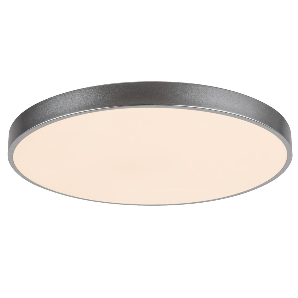 La plafoniera rotonda Tesia è l'ideale per chi cerca una luce elegante per il proprio soggiorno o per una camera da letto moderna, che abbia un aspetto semplice e ordinato ma che offra comunque molte funzioni aggiuntive. Nel modello Tesia, l'apparecchio in metallo argentato è completato da un paralume in plastica bianca. L'apparecchio è dotato di una sorgente LED integrata da 60W, con una potenza luminosa di 5000 lumen e una temperatura di colore che può essere regolata liberamente tra 3000 e 6000K tramite un interruttore a parete o un telecomando. L'impressionante durata della lampada è fino a 50.000 ore! La lampada Tesia è dotata di funzione dimming, ovvero l'intensità della luce può essere modulata tramite il telecomando. La lampada dispone anche di una funzione di memoria, di un timer e di una funzione di luce notturna. Il diametro di questa plafoniera estremamente sottile è di 600 mm e la distanza dal soffitto è di soli 50 mm.
