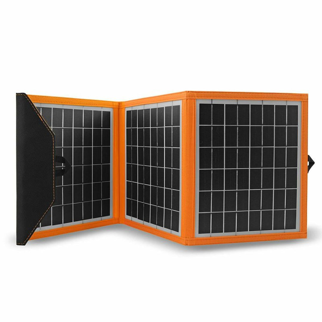 Pannello solare, caricatore, 60W, 2 porte USB, nero e arancione, A06