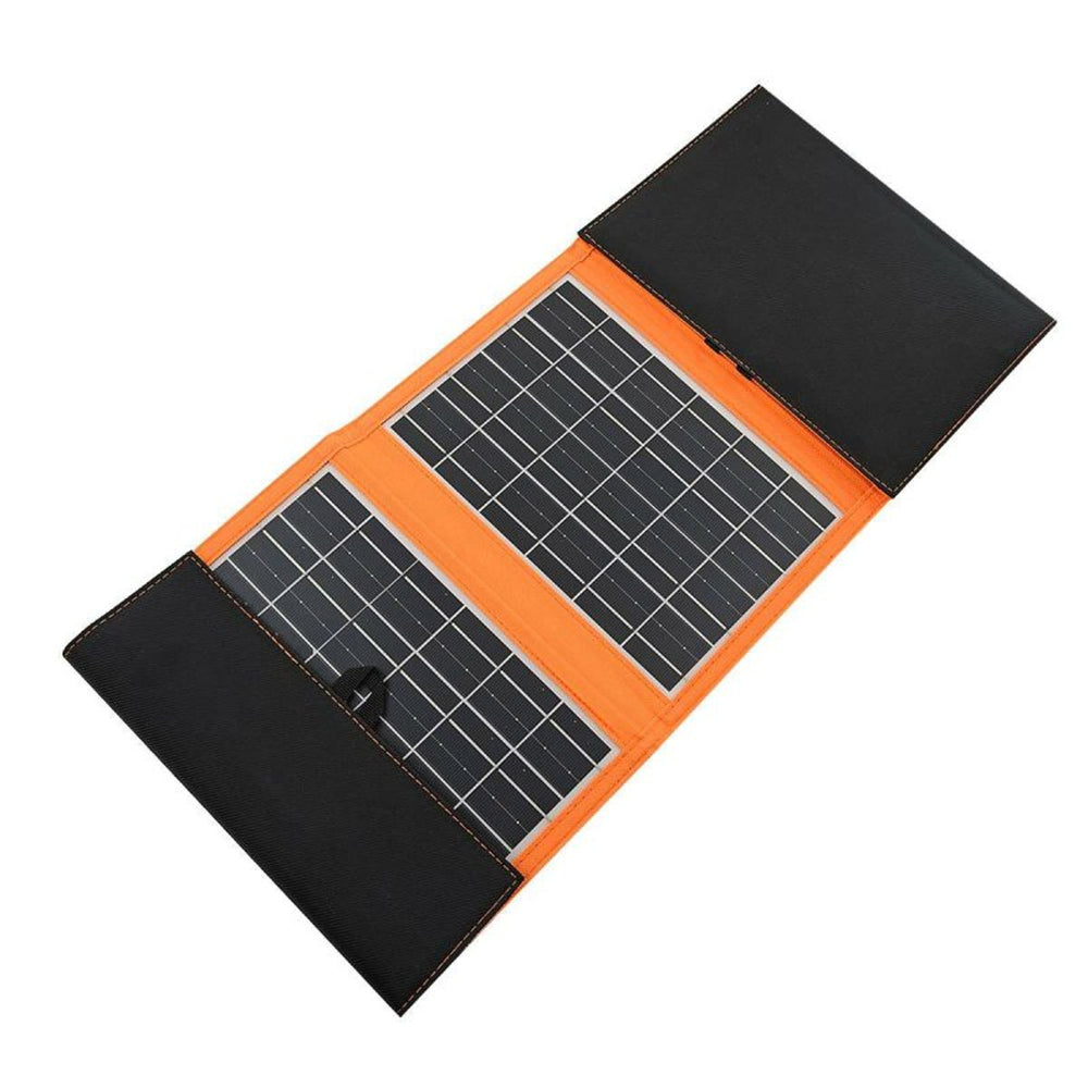 Pannello solare, caricatore, 20W, 2 porte USB, nero e arancione, A05