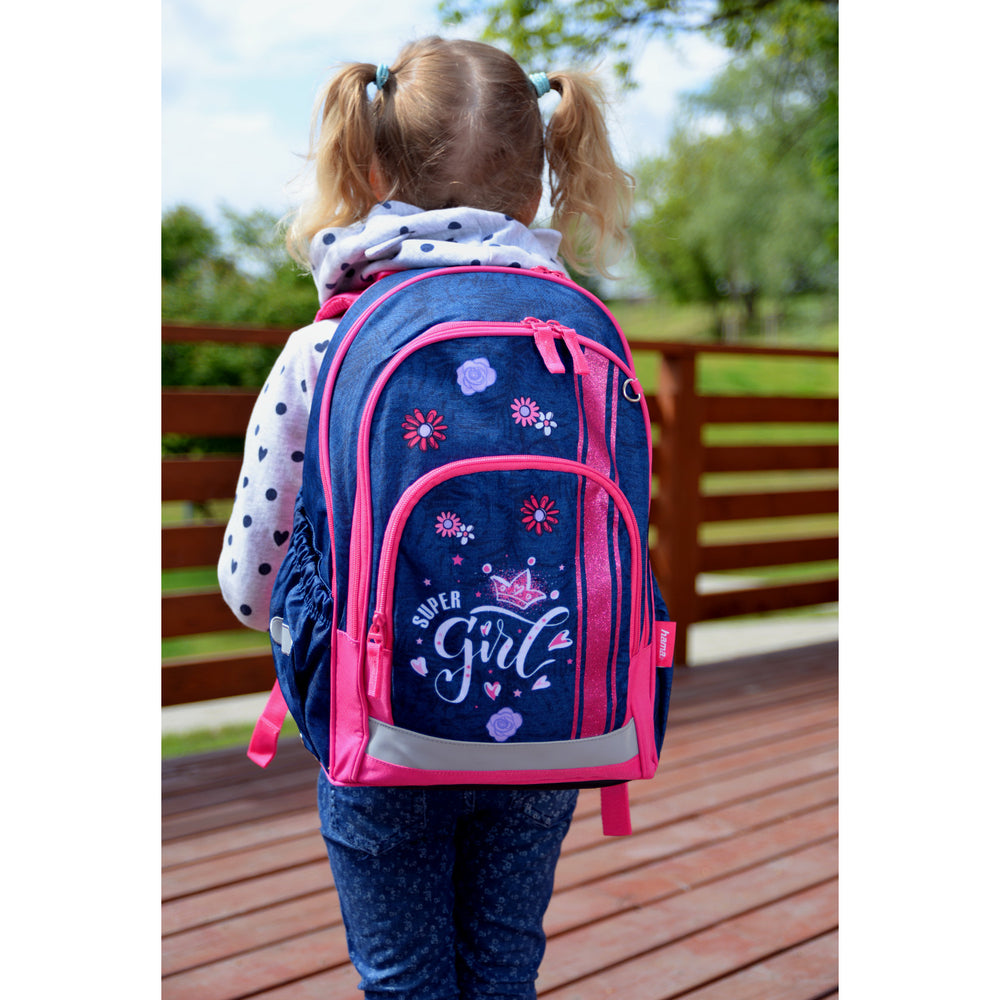 Zaino scuola Hama, schienale sagomato, catarifrangenti, Jeans Girl