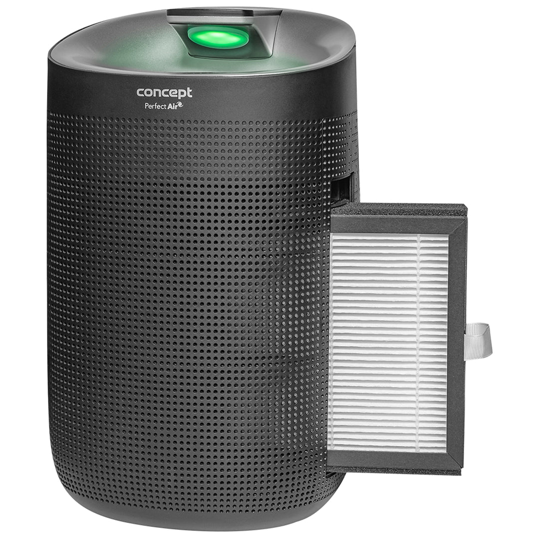 Concept Perfect Air OV1210 Deumidificatore e purificatore d'aria 2in1 750 ml/giorno per stanze fino a 25m2 Filtrazione a 3 stadi Depuratore d'aria per ambiente con filtro a carbone Hepa 13 1L (nero)