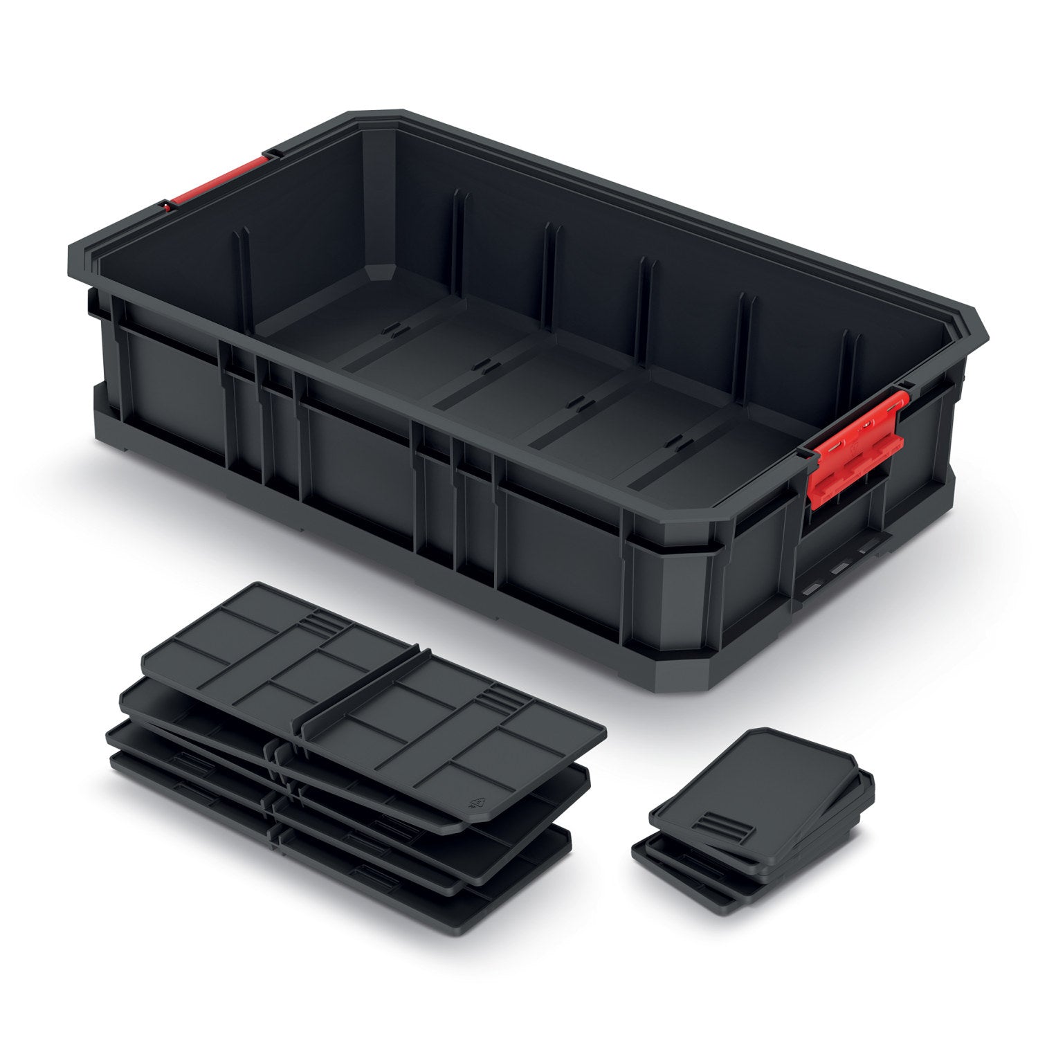 Cassetta porta attrezzi / cesto di trasporto Kistenberg MODULAR SOLUTION 10 PLUS KMS553510S. Dotato di 11 scomparti rimovibili per dividere l'interno. Dimensioni della scatola: 520 x 327 x 125 mm. Capacità fino a 50 kg. Compatibile con: SOLUZIONE MODULARE e piattaforma KXBP6045.