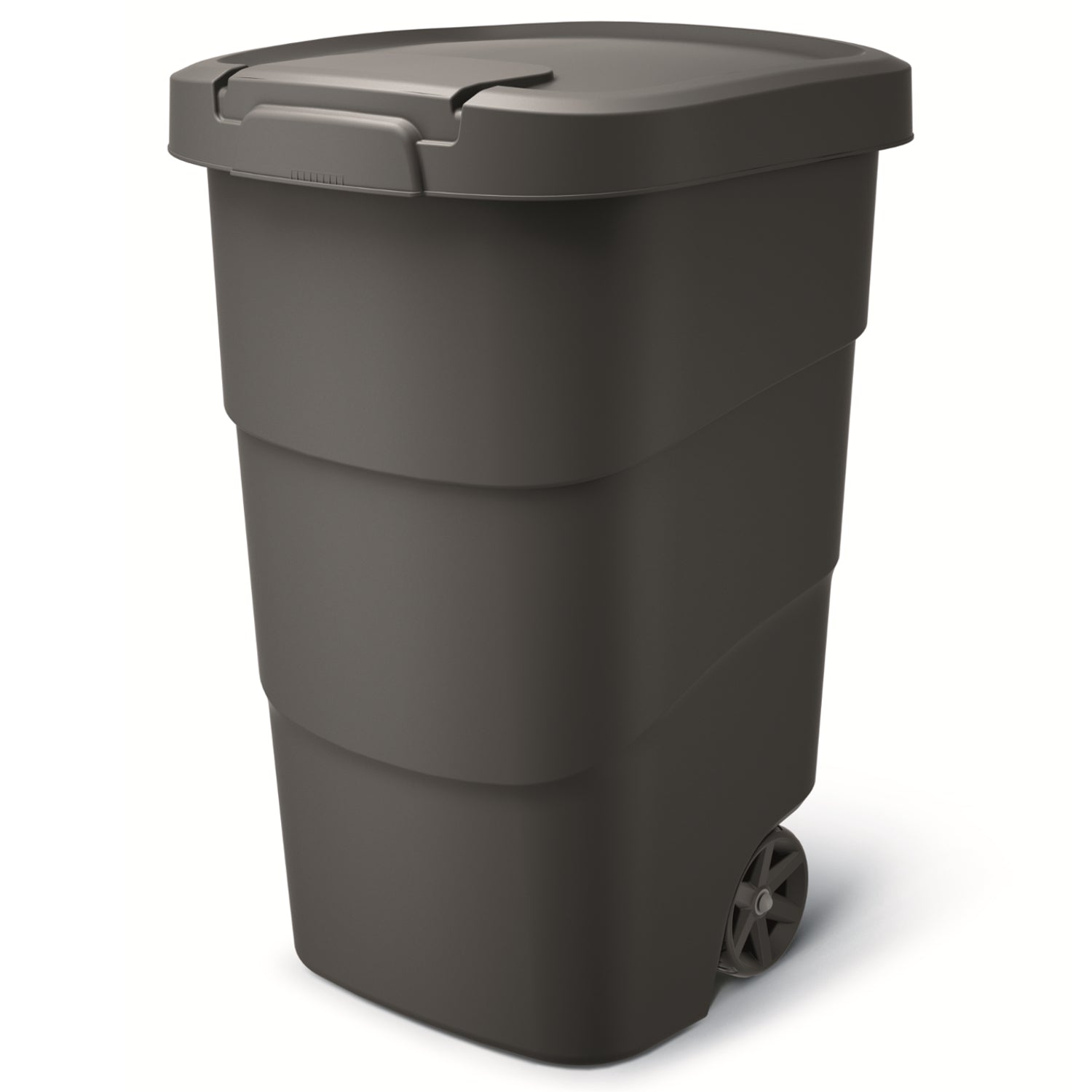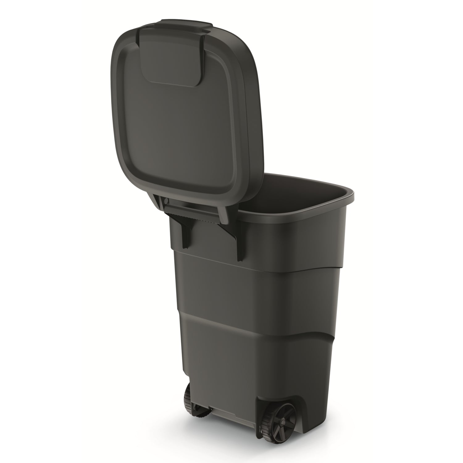 Wheeler 95L Cestino per rifiuti con ruote e coperchio Pattumiera grande universale in plastica (nero)