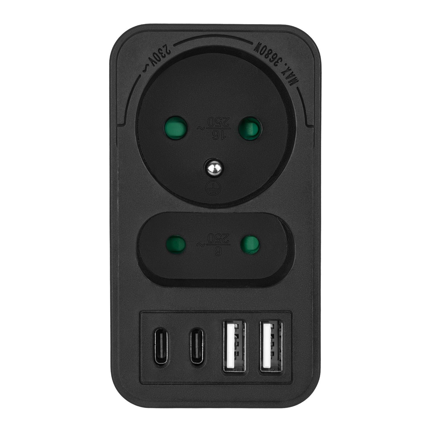 3x splitter 2 prese 2x USB-A 2x USB-C nero