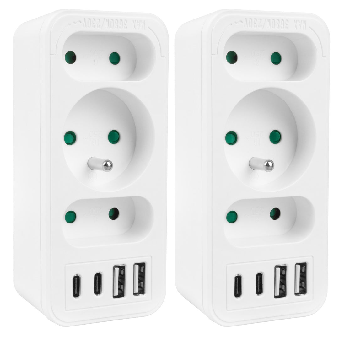 Presa di corrente x3 + 4xUSB Maclean, splitter a 3 prese, 2xUSB A, 2xUSB C PD 20W, 1x16A + 2x6A, MCE248 F/W, 2 pezzi