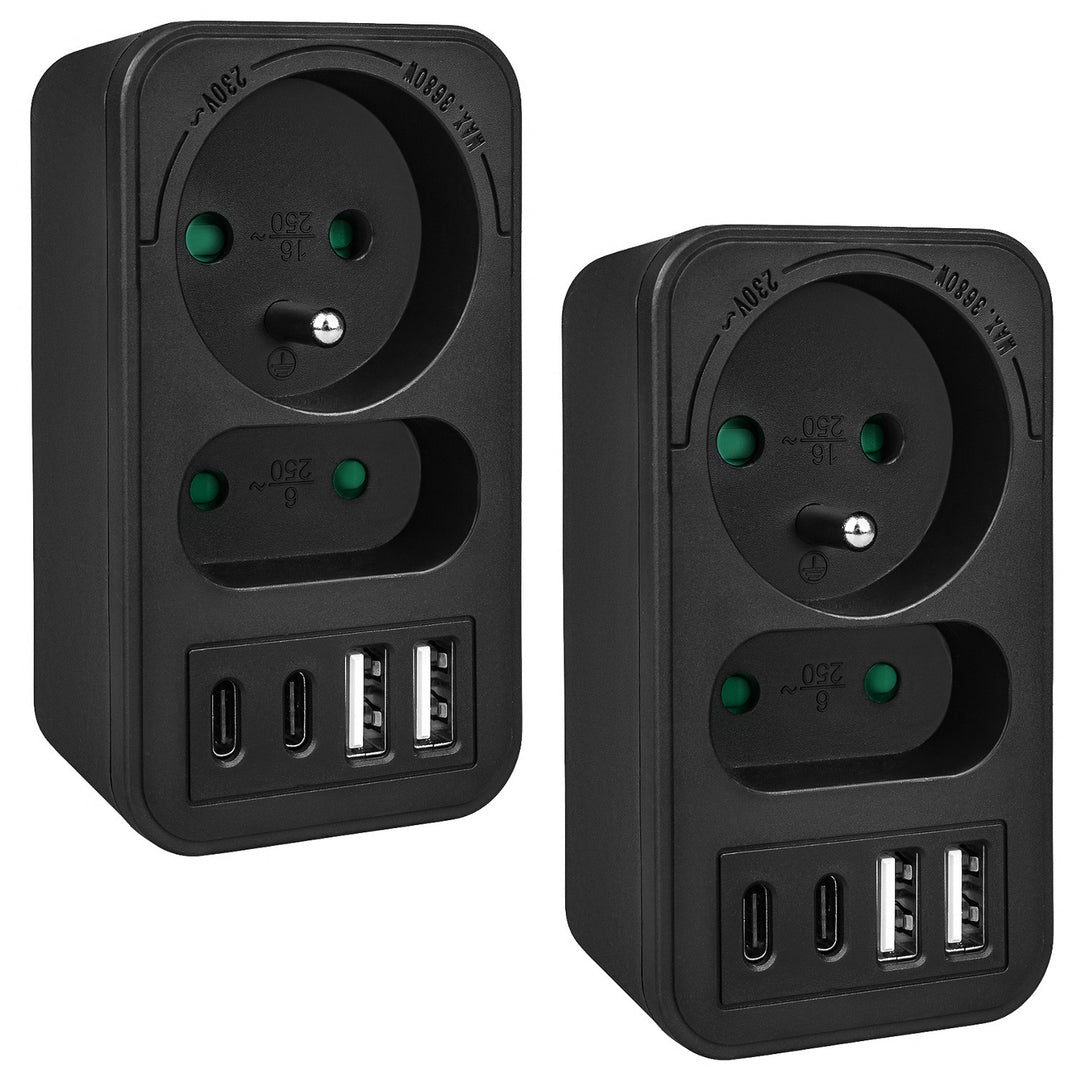 Presa di corrente Maclean x2 + 4xUSB, splitter con 2 prese, 2xUSB A, 2xUSB C PD 20W, 1x16A + 1x6A, MCE249 F/B, 2 pezzi