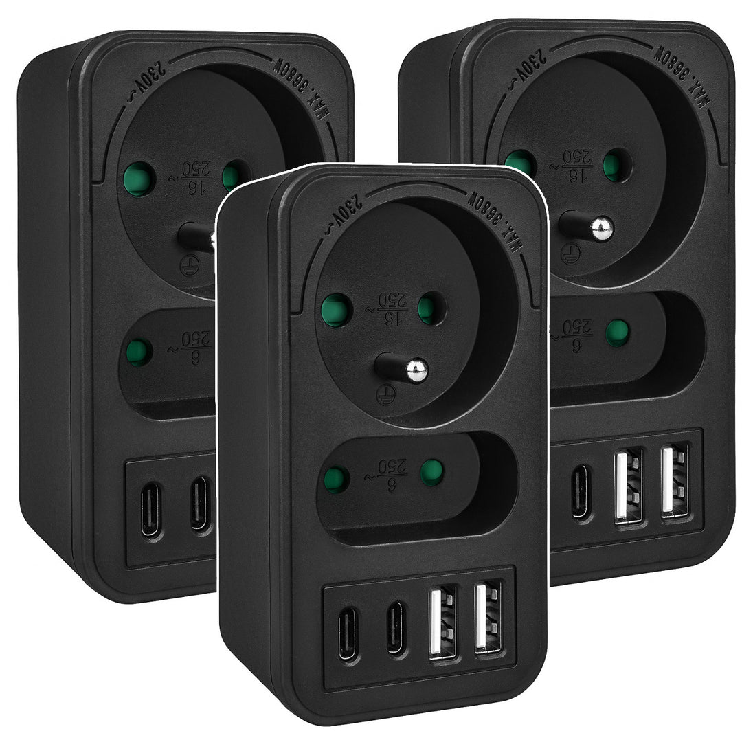 Presa di corrente x3 + 4xUSB Maclean, splitter a 3 prese, 2xUSB A, 2xUSB C PD 20W, 1x16A + 2x6A, MCE248 F/B, 3 pezzi