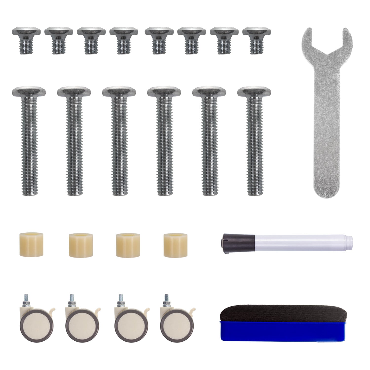 La lavagna è dotata di un ripiano su cui è possibile riporre comodamente i piccoli accessori, tra cui il pennarello e la spugna in dotazione. In questo modo, tutti gli elementi necessari sono sempre a portata di mano, il che aumenta il comfort di lavoro.