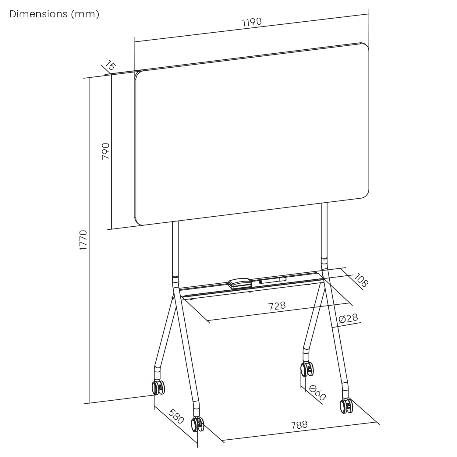 La superficie della lavagna bianca di 119x79 cm offre ampio spazio per scrivere appunti, disegni o diagrammi. Il formato orizzontale favorisce una presentazione chiara dei contenuti, soprattutto quando si lavora in gruppo.