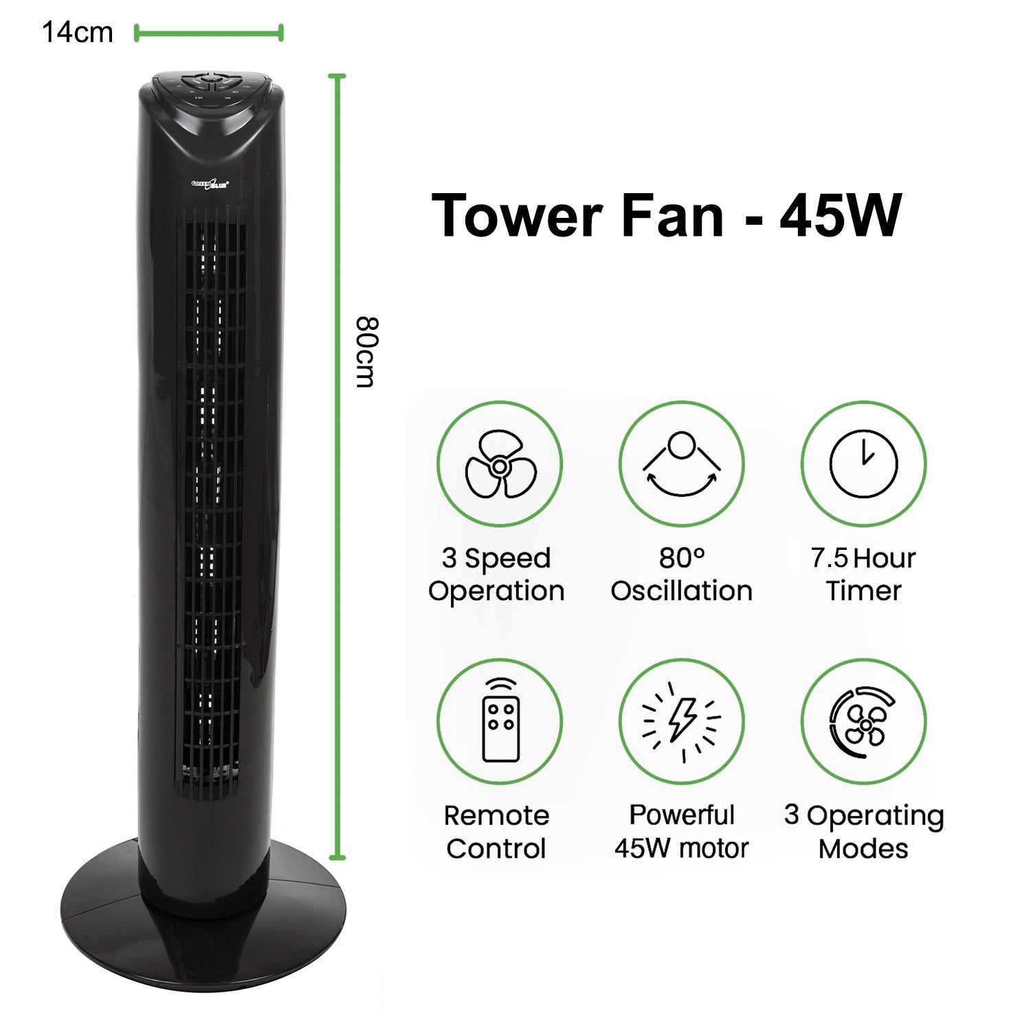 - Ventilatore a torre potente ed efficiente con design moderno e motore da 45W