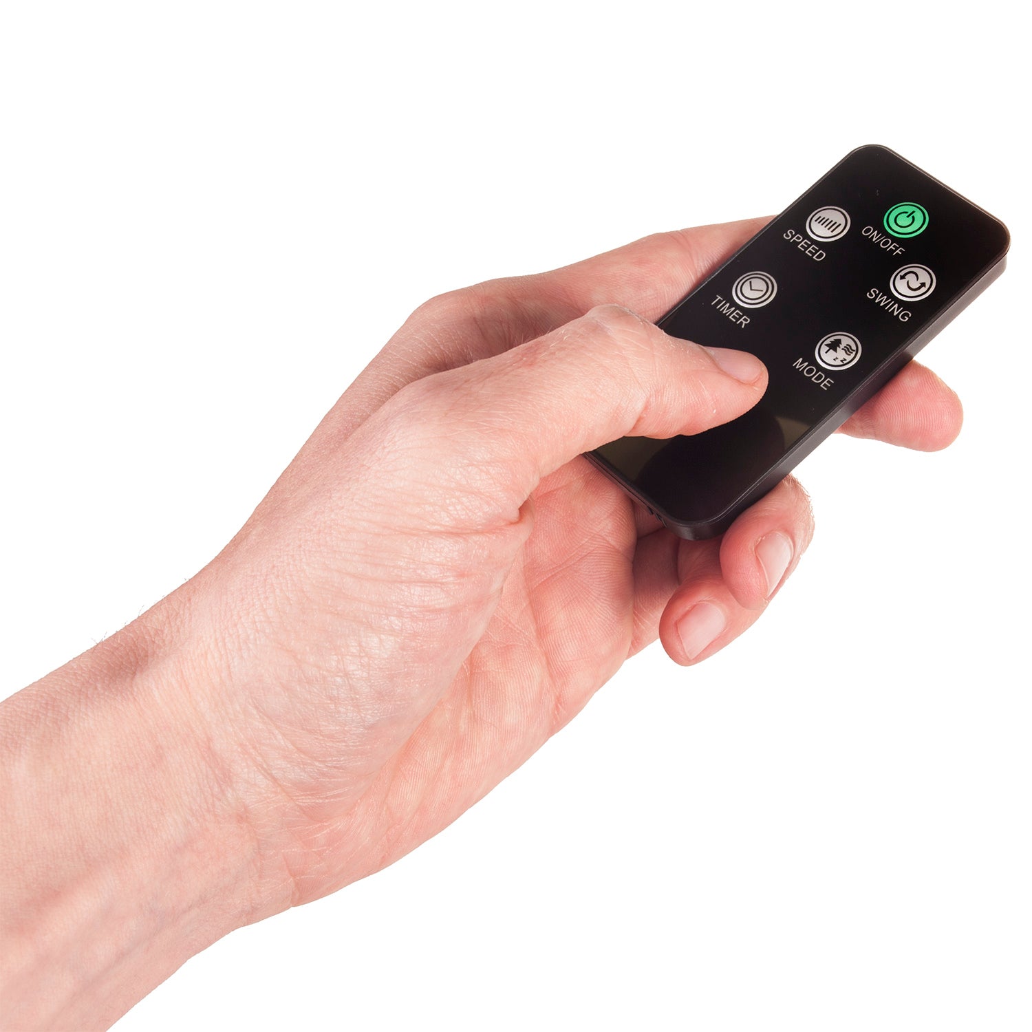 Il ventilatore a torre convince per l'elevata potenza di 45 W e la capacità di raffreddamento. Rinfresca rapidamente e piacevolmente nelle giornate più calde. Grazie alla funzione timer, è possibile impostare il tempo di funzionamento del dispositivo in un intervallo compreso tra 0,5 e 7,5 ore. Il ventilatore può essere collocato ovunque grazie alla sua leggerezza e al cavo di 1,5 m. Il ventilatore è alto 82 cm e ha un design moderno e sottile, per cui si adatta perfettamente sia a casa che al lavoro e non occupa molto spazio. L'ampia base garantisce una buona stabilità del dispositivo. Funzione oscillante e 3 livelli di velocità: la funzione oscillante con un angolo di rotazione di 80 gradi assicura un'abbondante distribuzione di aria fredda. È inoltre possibile impostare la velocità del flusso d'aria appropriata - 3 livelli. Facile controllo: grazie al telecomando, è possibile controllare comodamente il ventilatore senza alzarsi dal divano. Il ventilatore può essere controllato anche dal pannello di controllo posto sulla parte superiore dell'unità.