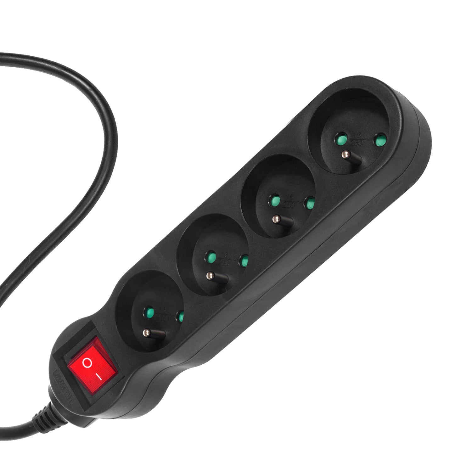 Ciabatta elettrica con 4 prese, consente di collegare contemporaneamente fino a quattro spine di dimensioni normali. È dotata di protezione per i bambini e di un interruttore di alimentazione illuminato integrato.