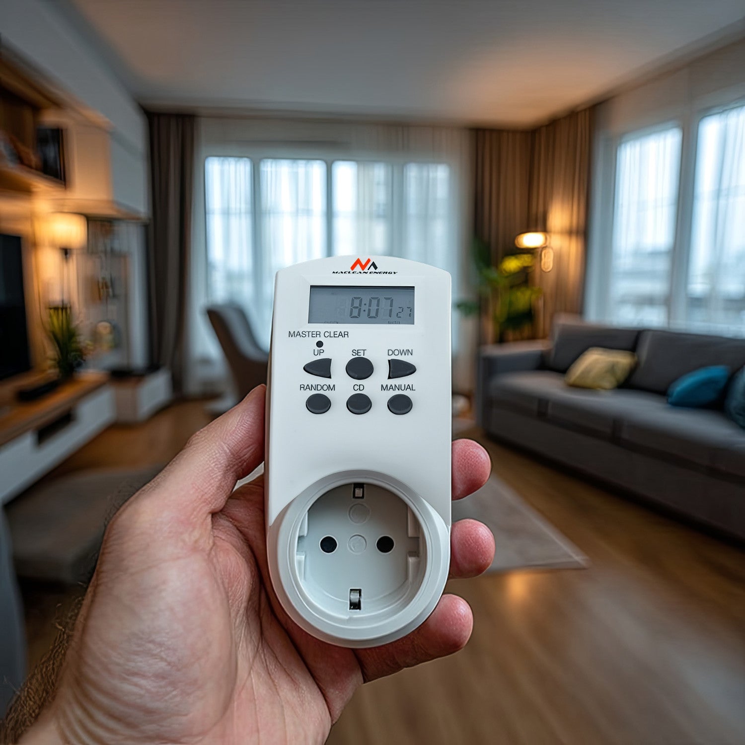 Timer digitale programmabile del Maclean Energy con LCD display e presa schuko.