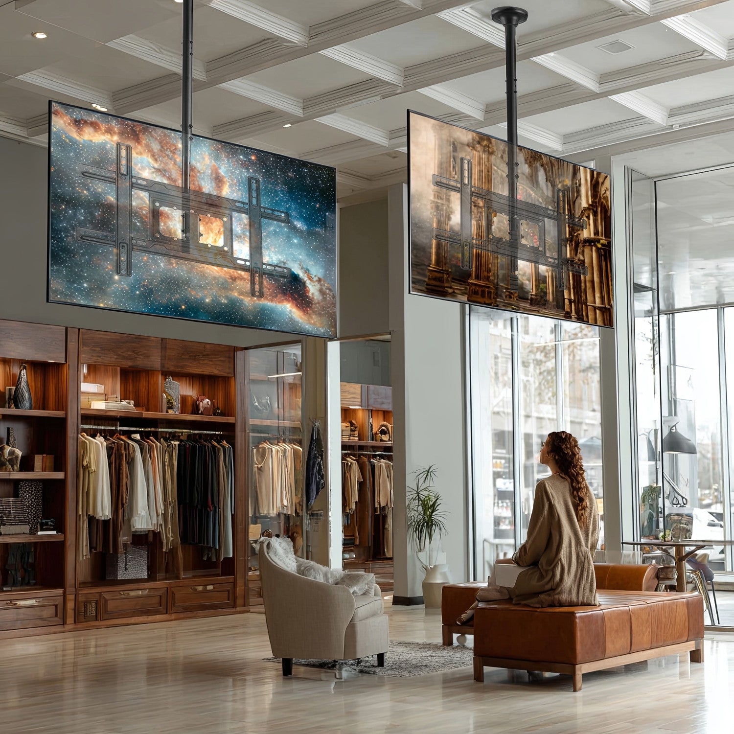 - Supporto universale a soffitto per monitor o TV / OLED / QLED / LED / PLASMA / LCD