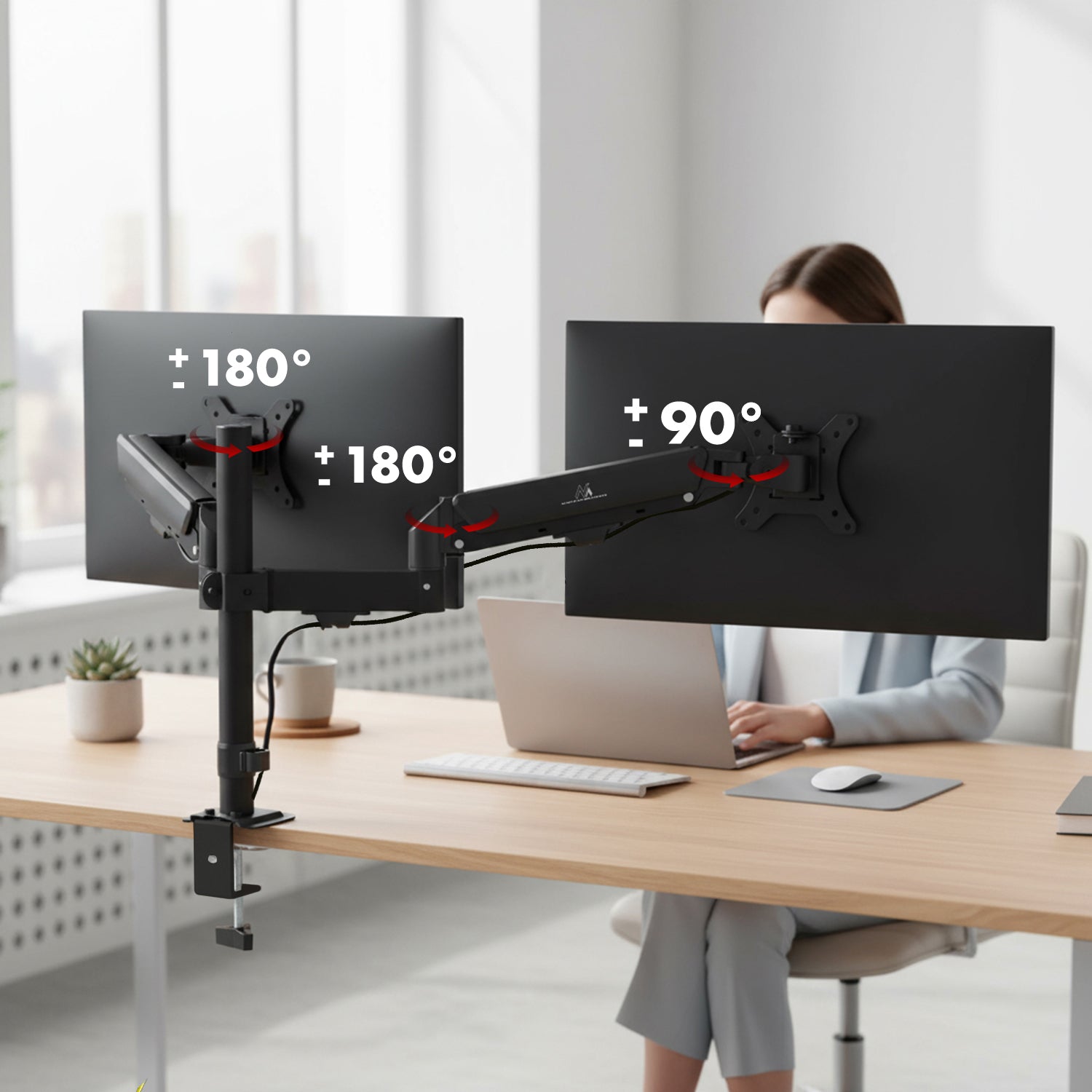 Supporto per 2 monitor Maclean, molla a gas, 17"-32", 2-10kg, nero, MC-136