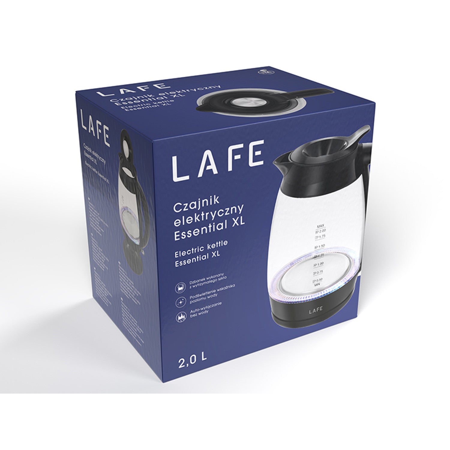Il bollitore Lafe Essential XL offre una capacità fino a 2 litri, che lo rende ideale per far bollire grandi quantità d'acqua in una sola volta. Ideale per preparare tè o caffè per la famiglia, gli ospiti o in ufficio, dove è necessario far bollire rapidamente grandi quantità d'acqua.