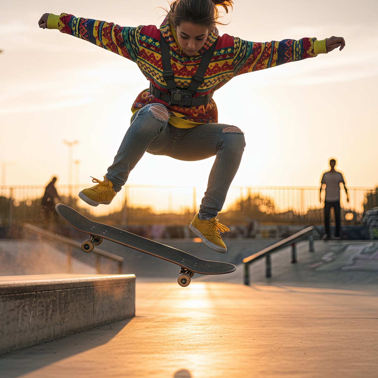L'imbracatura consente di montare una videocamera GoPro o un telefono sul petto. Possono essere utilizzate sia da uomini che da donne, sia da chi ha una figura minuta che da chi ha una corporatura robusta. Tutto ciò grazie all'ampia scala di regolazione e all'elevata flessibilità delle cinghie di montaggio.