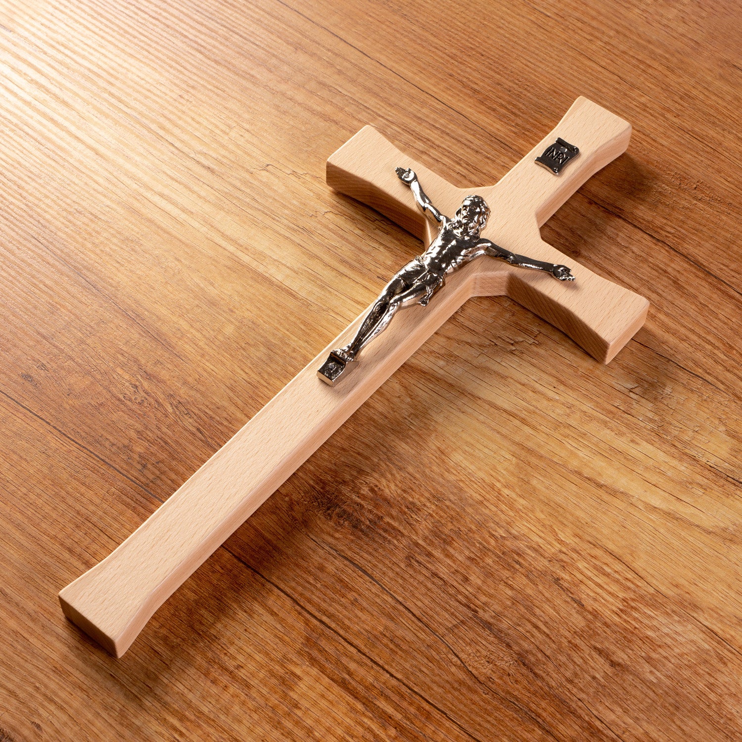 Croce classica di faggio da parete, colore naturale 18x8x1,4 cm