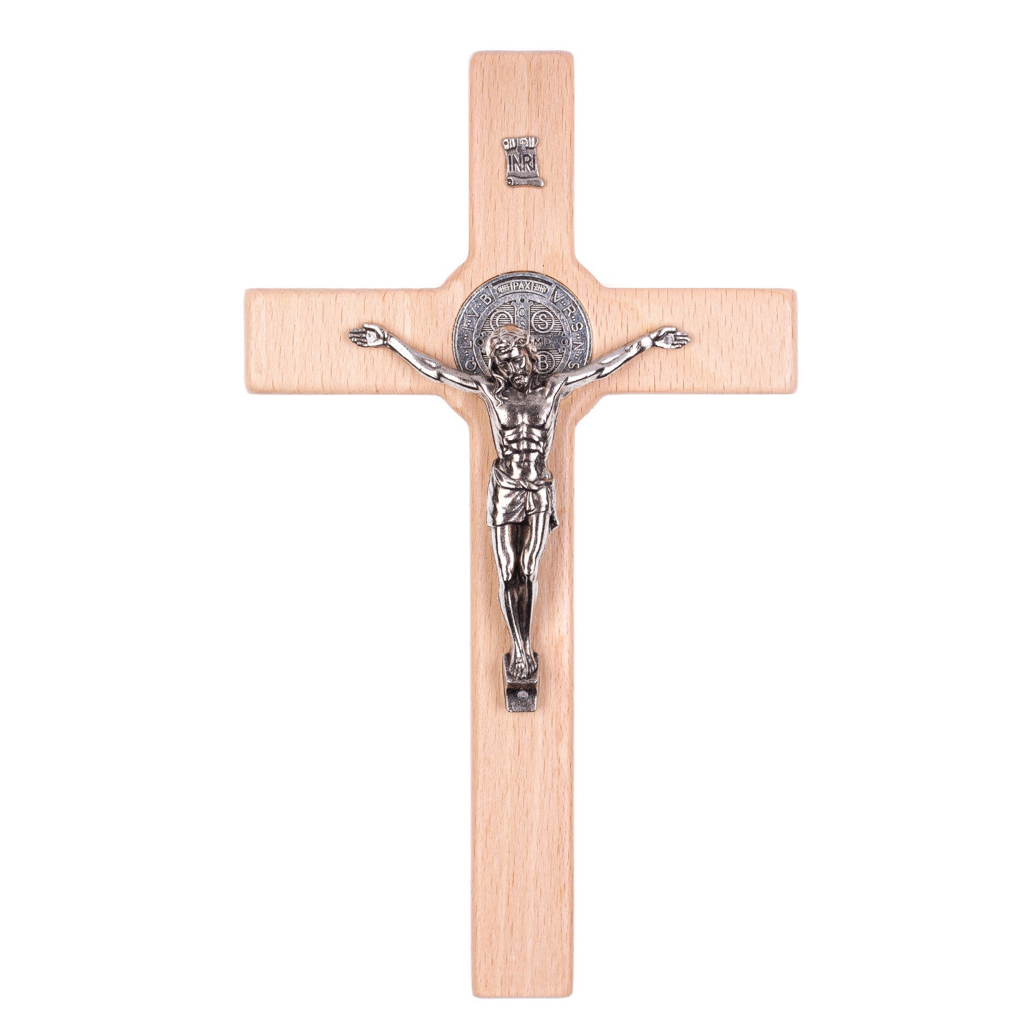 - Croce pendente in legno di San Benedetto con la Croce della Passione 18x10x1,8 cm