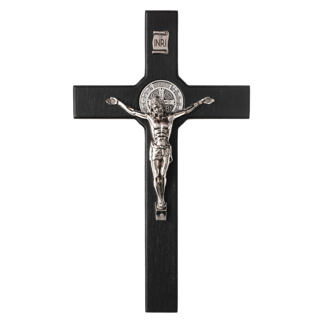 Croce di San Benedetto in legno con pasqua, colore nero 18x10x1,8cm