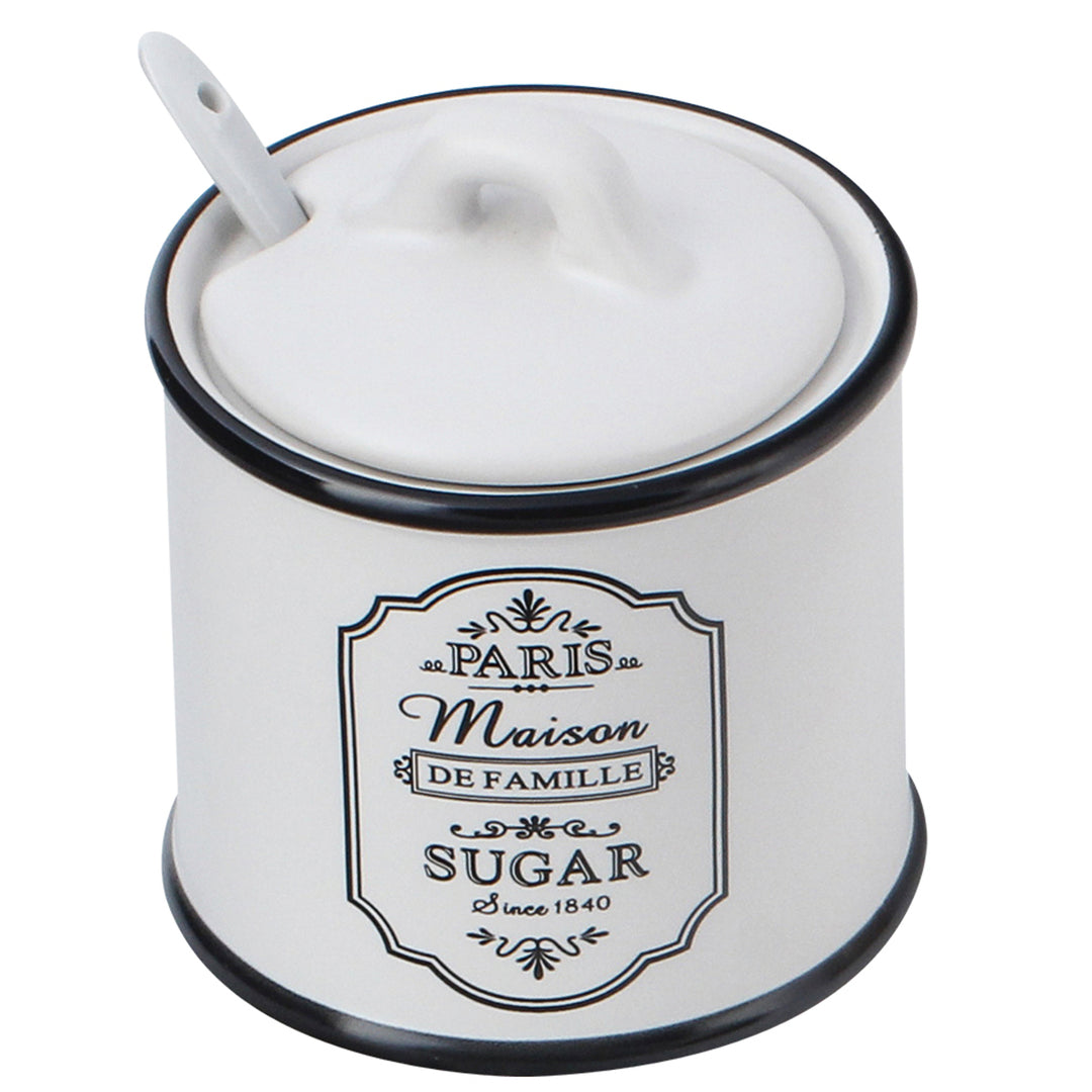 Set 3x barattoli per conservazione Paris Zucchero Caffè Tè 3x Ø11,3 x 18,5cm Bianco/Nero Cucina Contenitore
