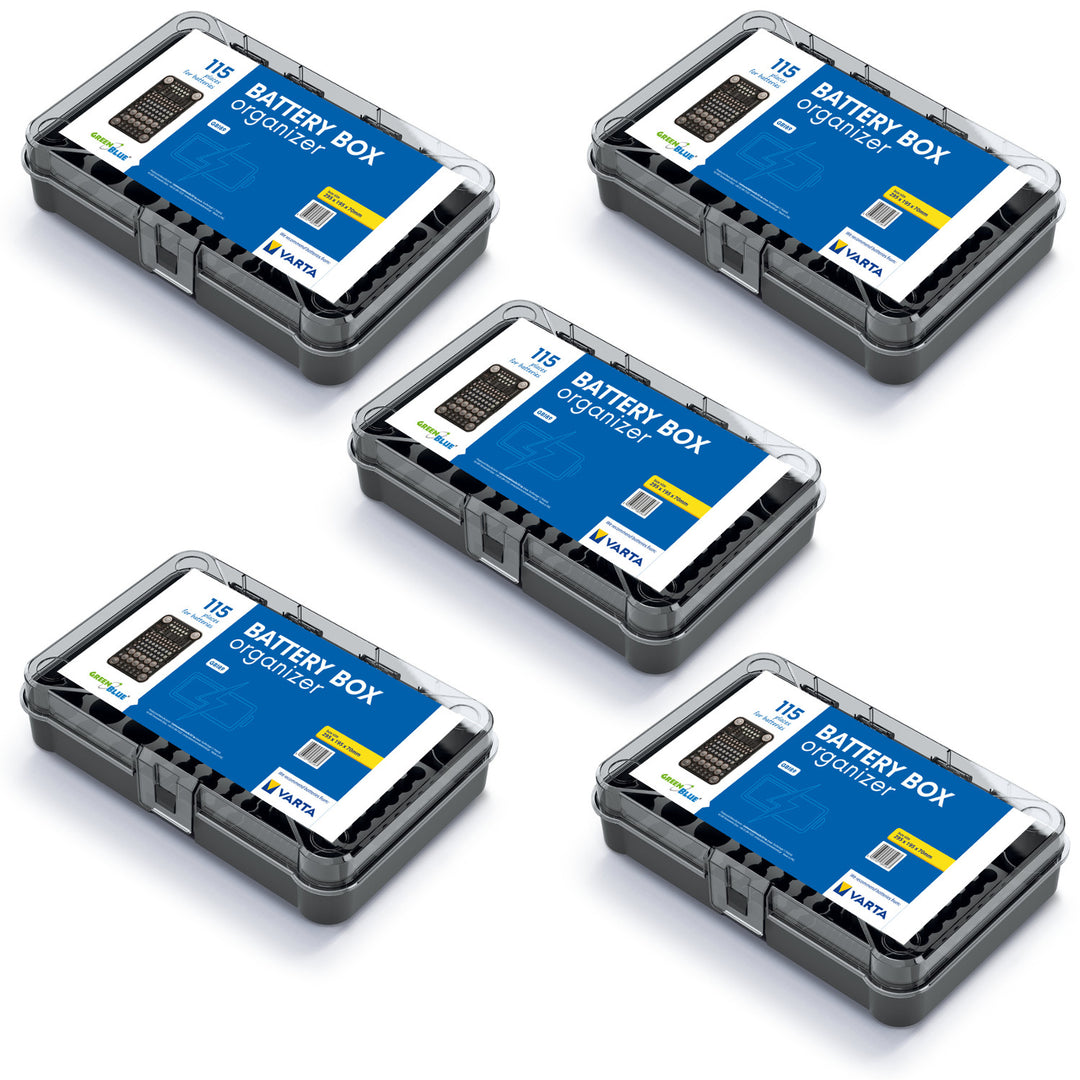 Organizzatore di batterie GreenBlue, coperchio trasparente, 115 spazi, Varta Box GB189, 5 pezzi