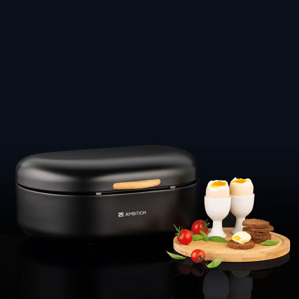 Portapane Ambition, acciaio, Contenitore per il pane con manico in legno, nero, 35 cm, Olivier