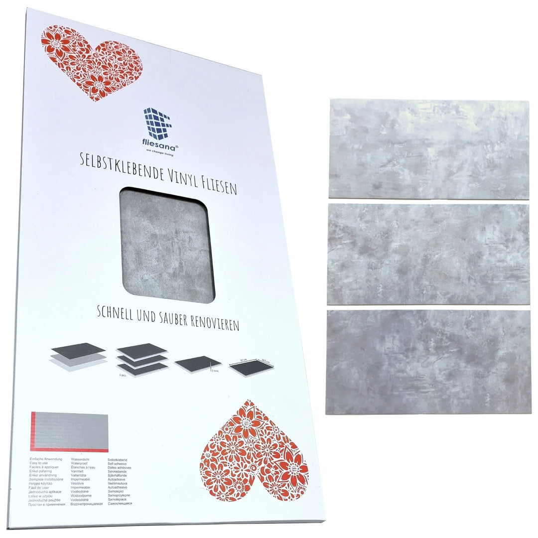 Piastrelle autoadesive per pareti e pavimenti Fliesana, set di 3, impermeabili, effetto cemento, colore grigio chiaro