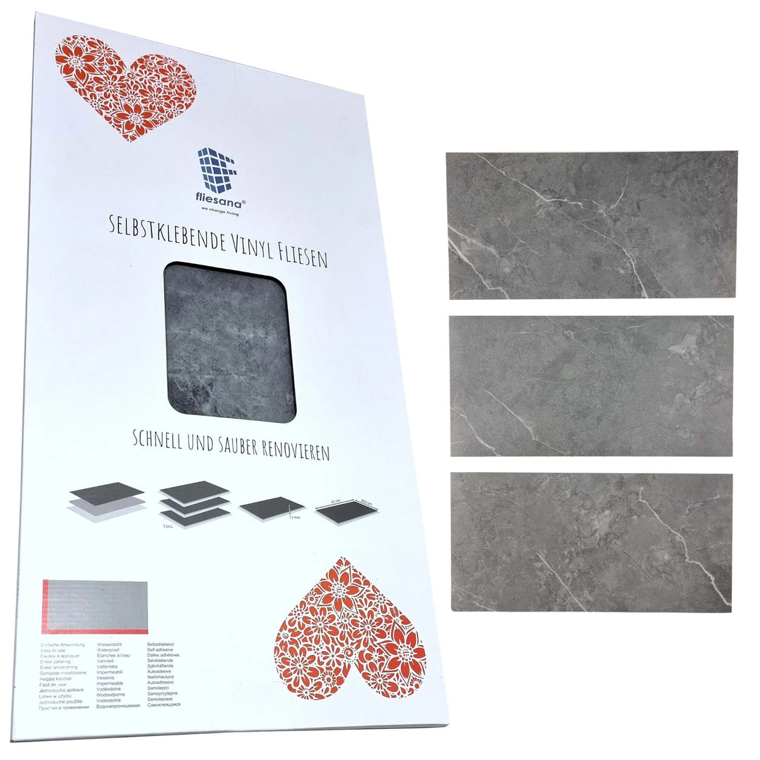 Piastrelle autoadesive per pareti e pavimenti Fliesana, set di 3, impermeabili, design in pietra naturale, colore grigio scuro