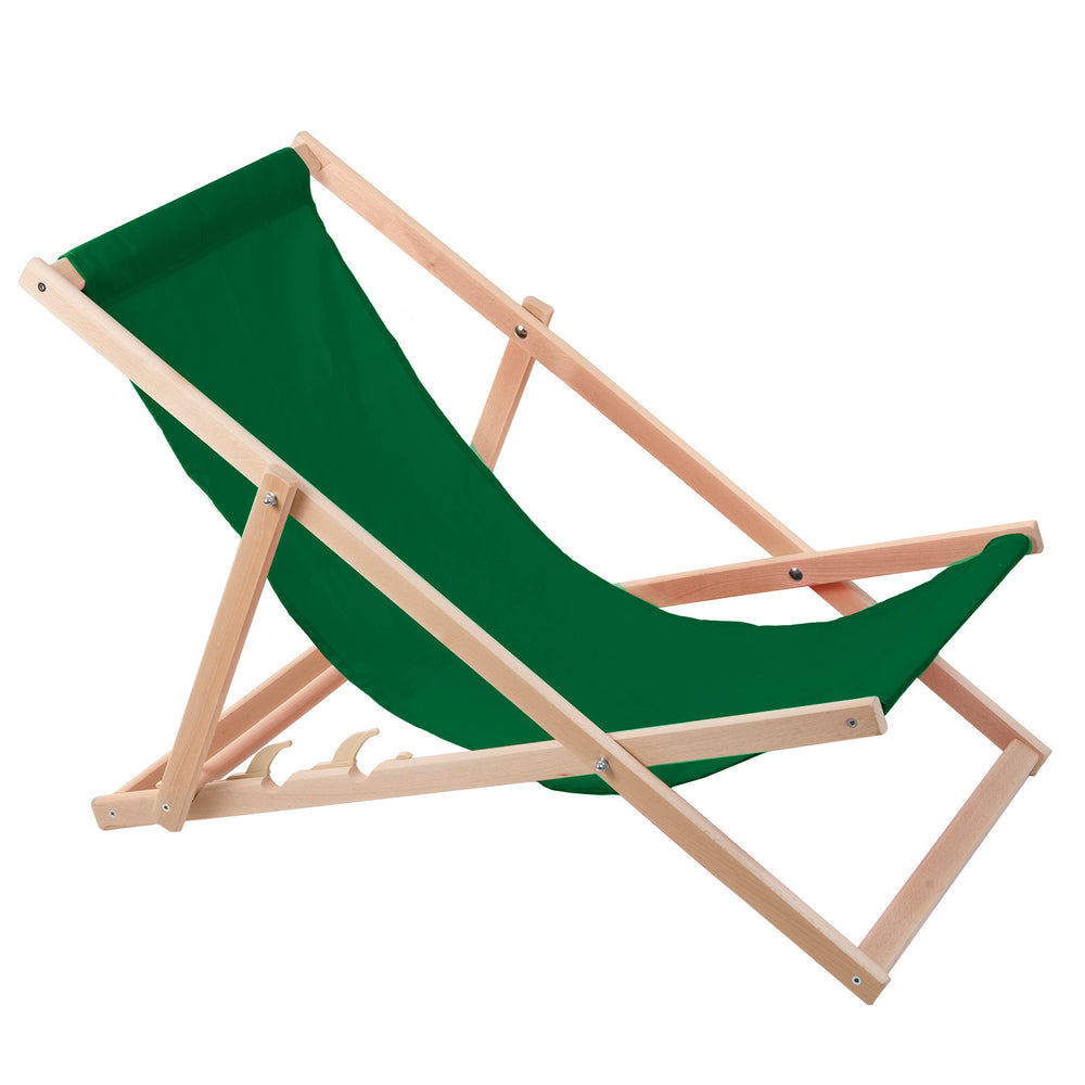 Lettino in legno di faggio Woodok, verde, ideale per la spiaggia, il balcone, il terrazzo, colore verde