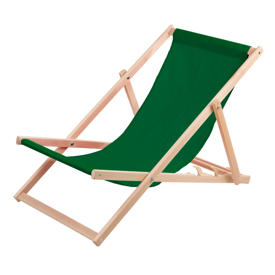 Comoda sedia a sdraio in legno di colore verde, ideale per la spiaggia, il balcone, la terrazza