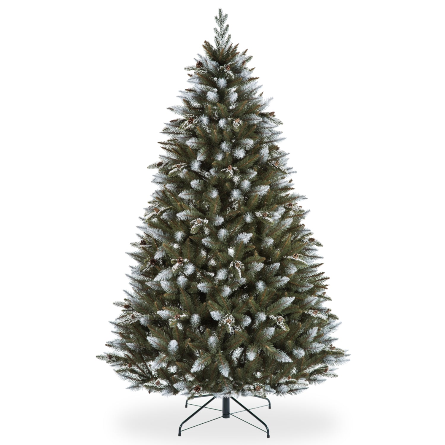 Abete con ramoscelli in PE. Abete realizzato con pellicola in PVC di alta qualità di colore verde marcio- il queale assomiglia magnificamente il colore naturale dell'albero. Inoltre, è stato decorato con ramoscelli di PE. Il verde marcio è una delle tonalità più interessanti di questo colore. È abbastanza caldo grazie all'aggiunta di pigmento giallo, ma decisamente più scuro e saturo dell'oliva. A differenza del kaki, manca l'aggiunta del marrone. È una tonalità chiaramente ispirata alla natura. Può essere associato alla vegetazione palustre o a una giungla umida e un po' scura. I rami dell'albero di Natale sono formati da aghi sottili e piuttosto rigidi di circa 2 cm di lunghezza, con al centro un finto fusto formato da una lamina marrone. Gli aghi sono disposti molto vicini tra loro, in modo che l'albero di Natale sia denso. Alcuni rametti alle estremità sono stati ricoperti di neve con una speciale vernice bianca. L'albero di Natale è stato arricchito con rametti di PE, sui quali sono state applicate a mano neve artificiale e una pigna naturale. Tutti i ramoscelli in PVC, tagliati a forma di cono naturale, sono fissati in modo permanente a un doppio filo d'acciaio, che tuttavia si dispiega facilmente e permette di modellare l'albero di Natale come si desidera. Può contenere anche pesanti decorazioni natalizie. Il tronco dell'albero è costituito da un profilo metallico a sezione esagonale. L'intero albero poggia su un supporto stabile.