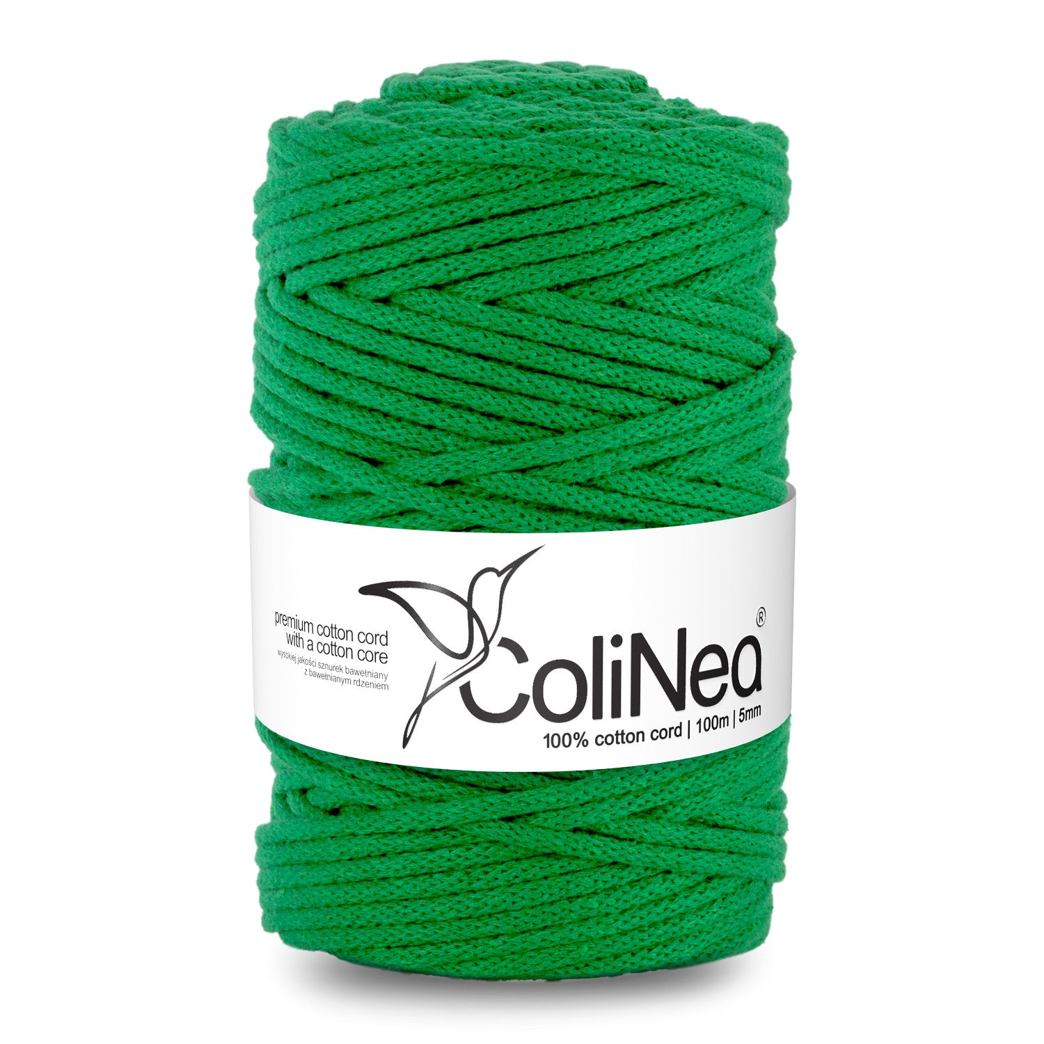 ColiNea, cordino in cotone con anima in cotone, intrecciato, 5 mm, 100 m, verde