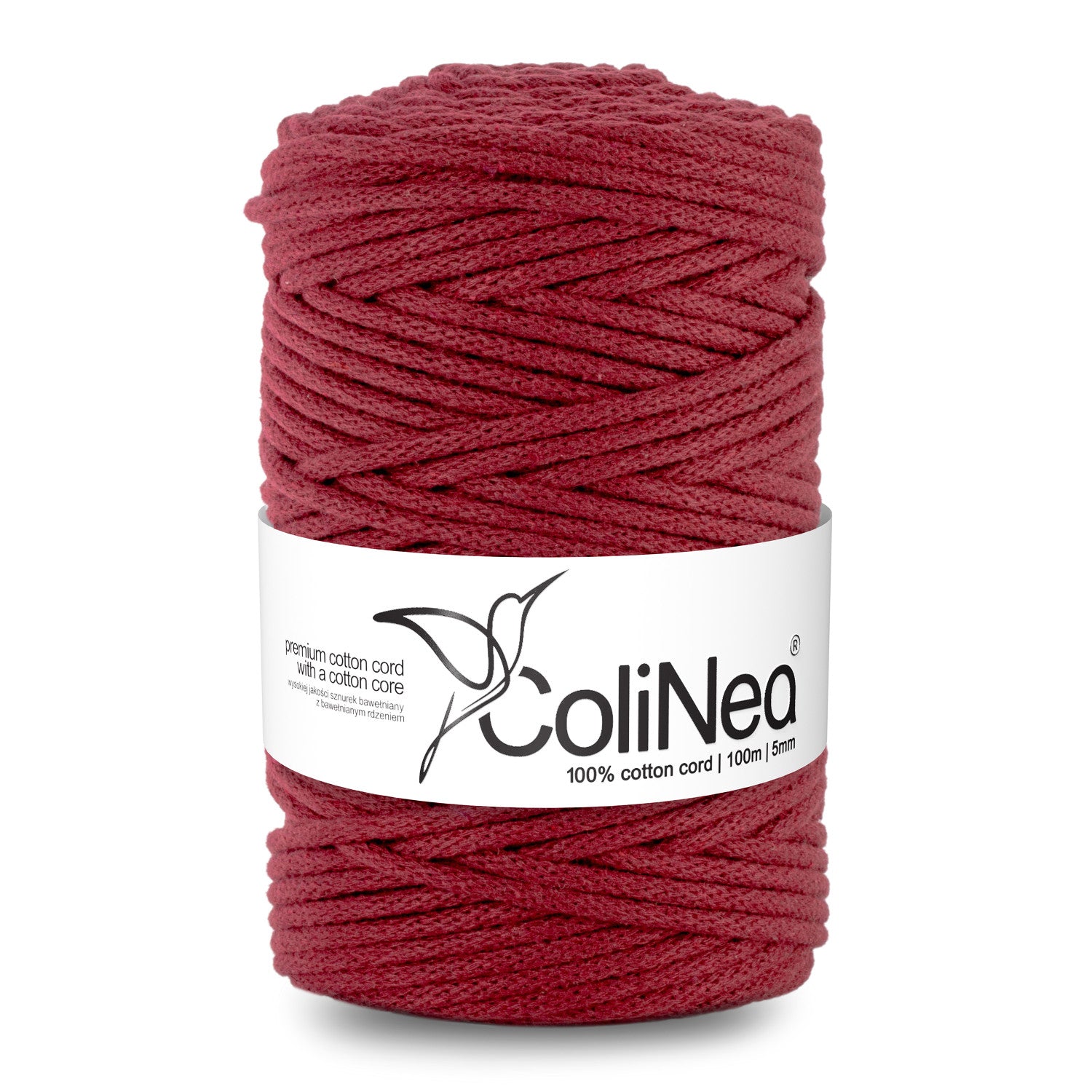 - ColiNea, cordoncino in cotone con anima in cotone, intrecciato, 5mm, 100m, bordeaux
