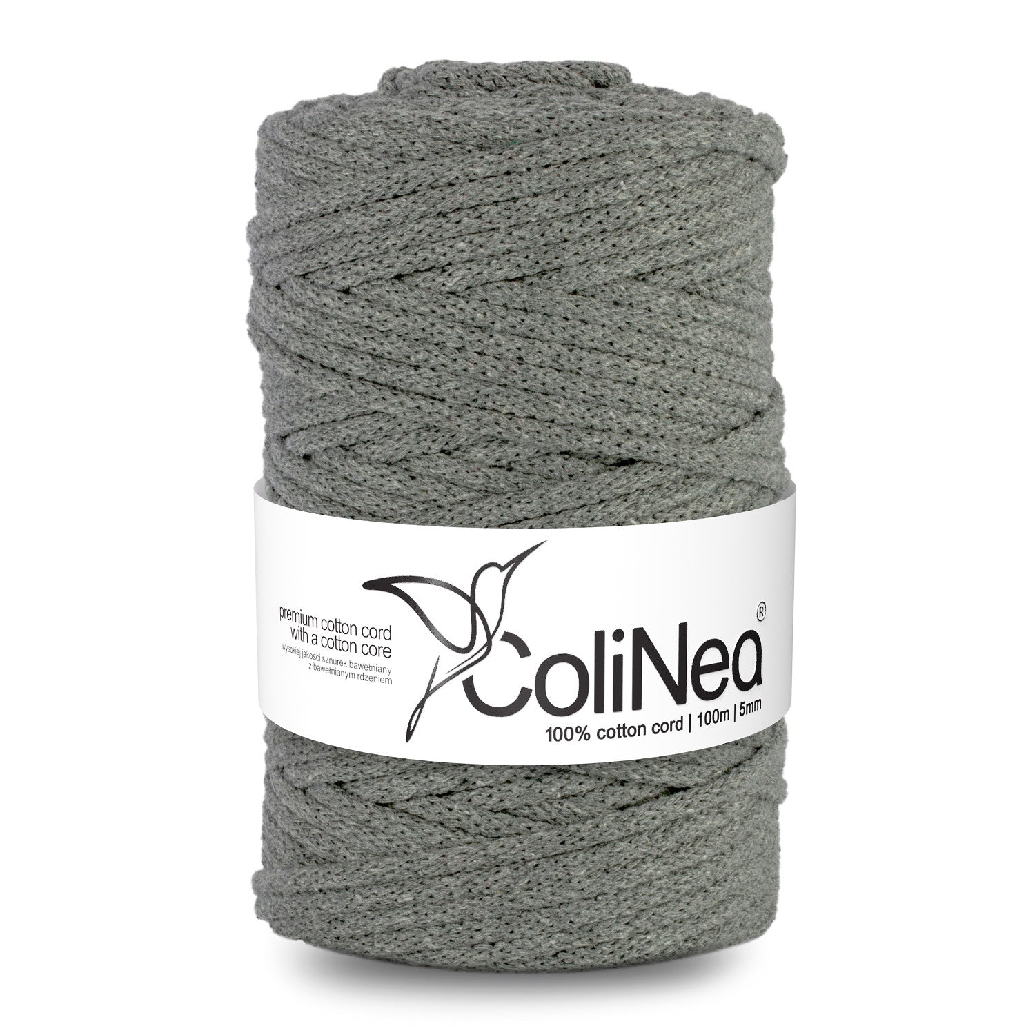 ColiNea, cordoncino in cotone con anima in cotone, intrecciato, 5mm, 100m, grigio scuro