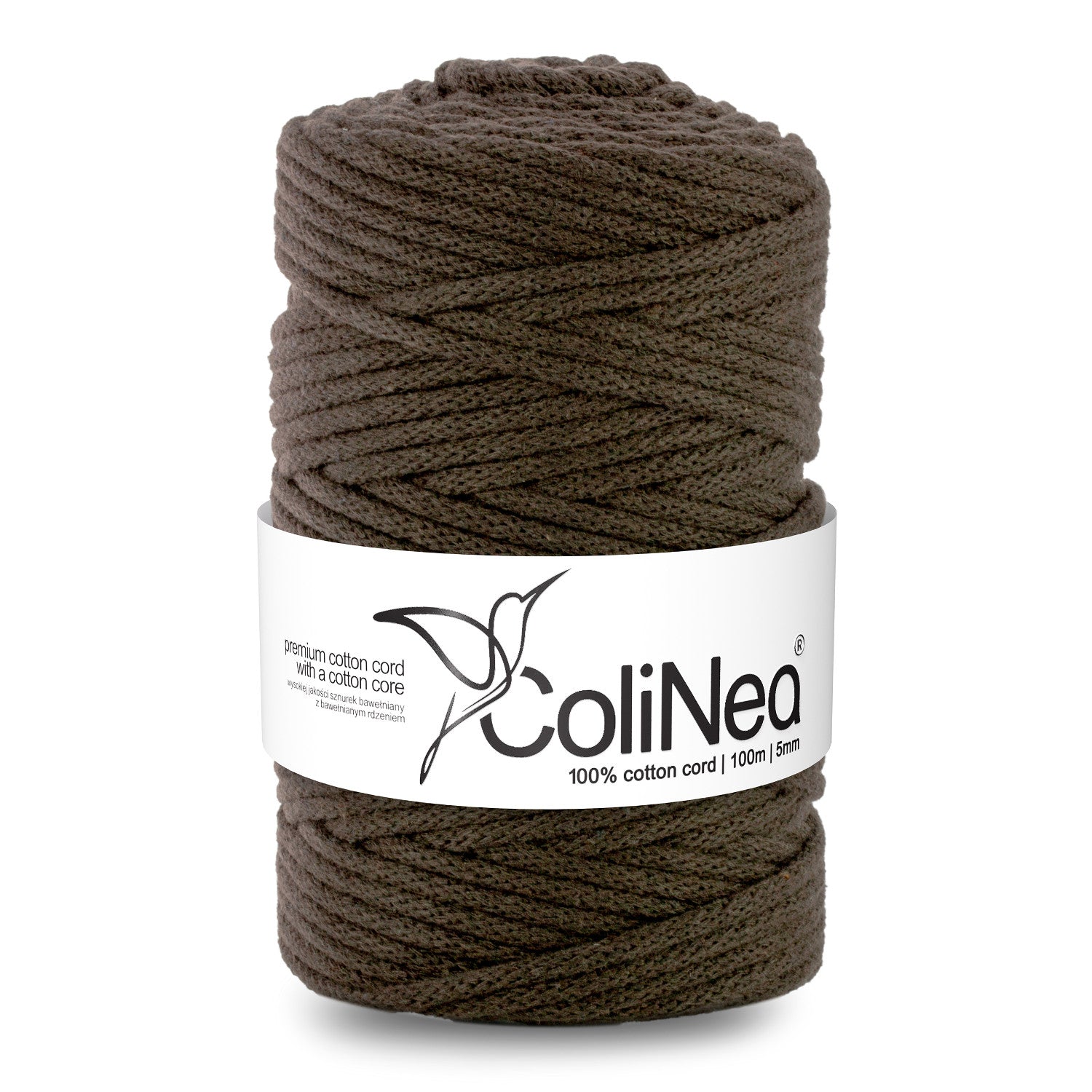 ColiNea, cordoncino in cotone con anima in cotone, intrecciato, 5mm, 100m, marrone scuro