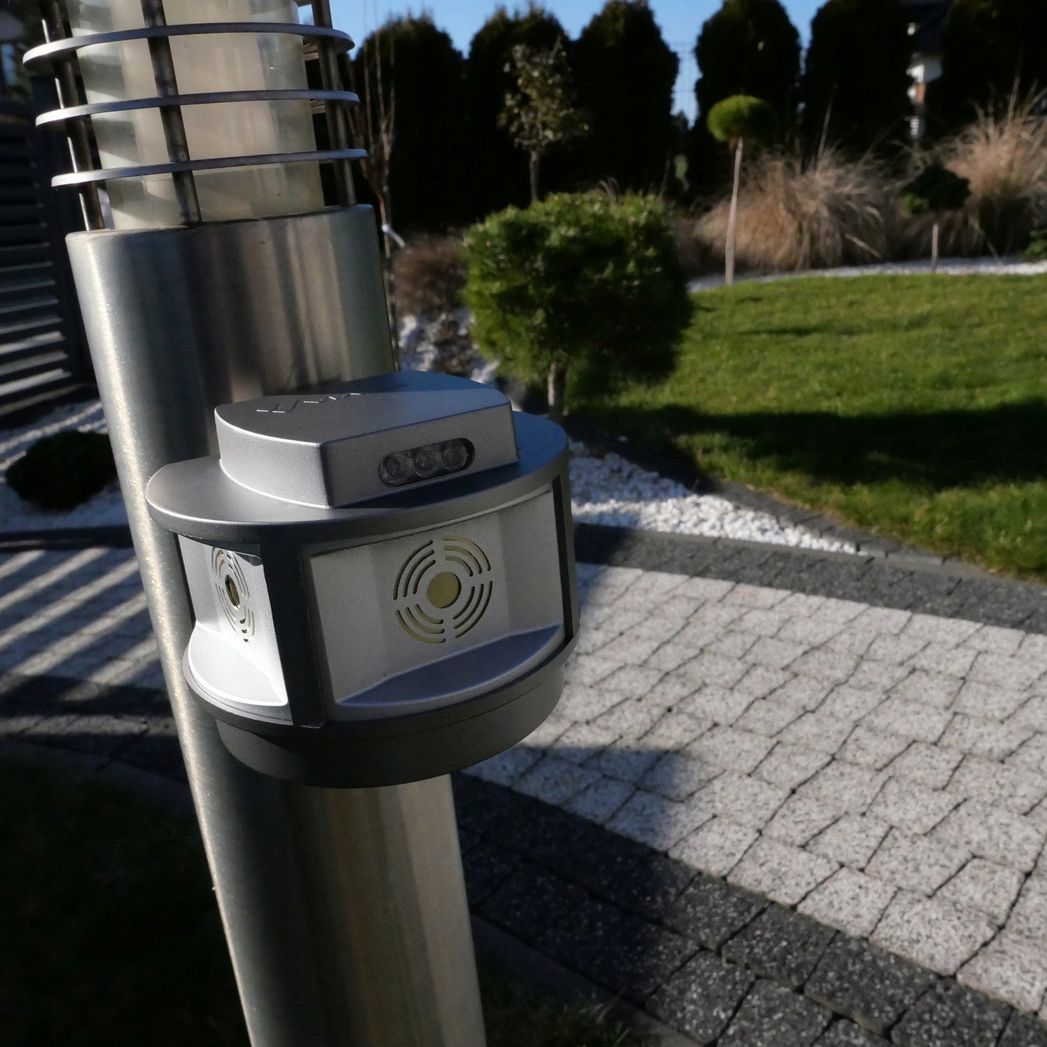 Posizionando gli altoparlanti perpendicolarmente l'uno all'altro in tre direzioni, si ottiene un angolo di azione fino a 270 gradi. Il vantaggio principale del dispositivo è la sua wirelessità e la lunga durata di funzionamento. La versione wireless del dispositivo con batteria interna ad alta capacità (4Ah Li-ion) è in grado di funzionare per oltre 200 giorni con una sola carica in modalità suono e ultrasuoni (caricatore incluso) e fino a 100 giorni con la modalità LED attivata.