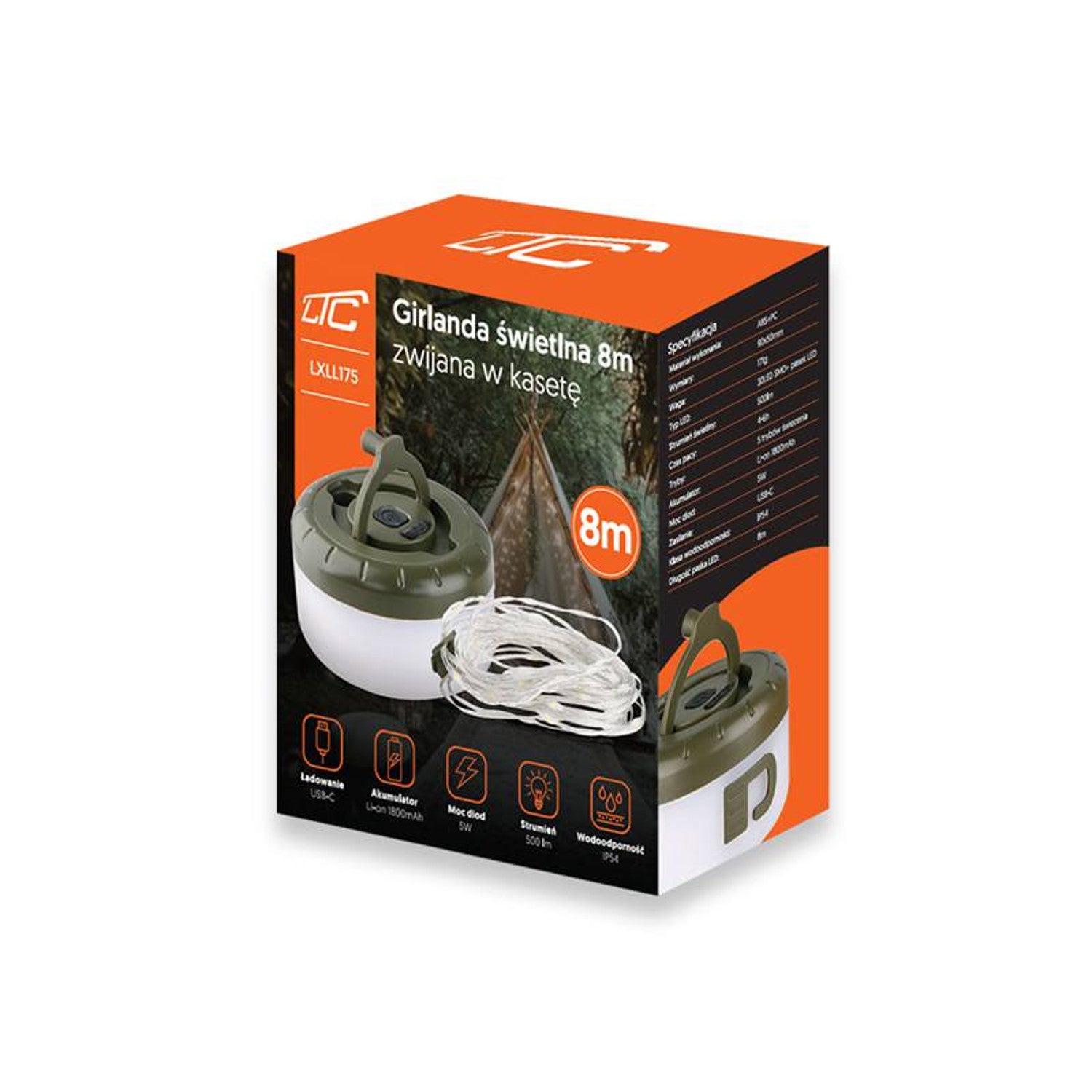 La ghirlanda luminosa LTC è una soluzione pratica ed esteticamente gradevole per l'illuminazione degli spazi esterni. Il prodotto ha una lunghezza di 8 metri ed è dotato di 30 LED SMD da 5W, che emettono luce con un colore caldo di 3000K. Grazie alla batteria integrata agli ioni di litio da 1800 mAh, la ghirlanda può funzionare senza una fonte di alimentazione esterna. La ricarica avviene tramite una porta USB-C, comoda e moderna. Il prodotto ha una classificazione IP54, il che significa che è resistente alla polvere e agli spruzzi.