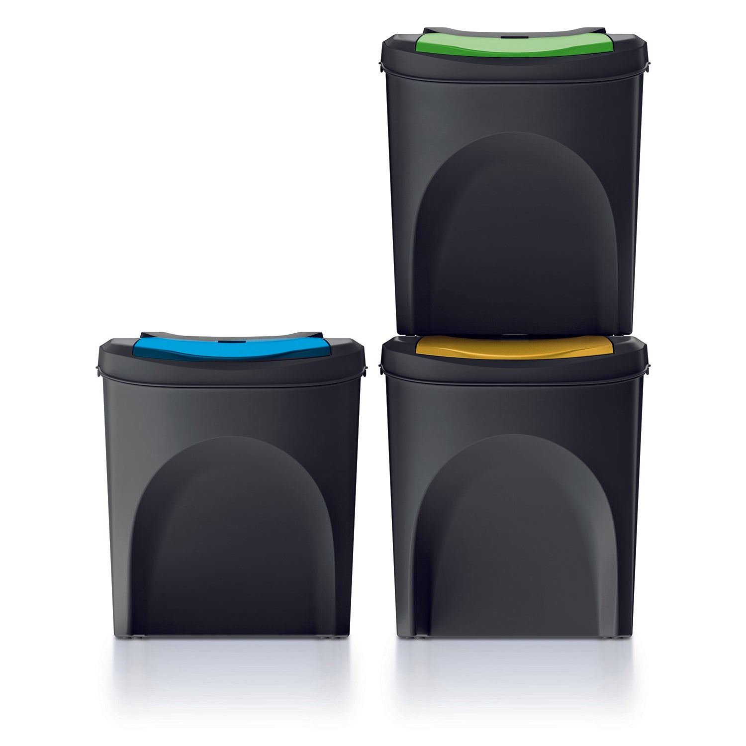 Keden Sortibox 3x25L set di contenitori per la raccolta differenziata nero