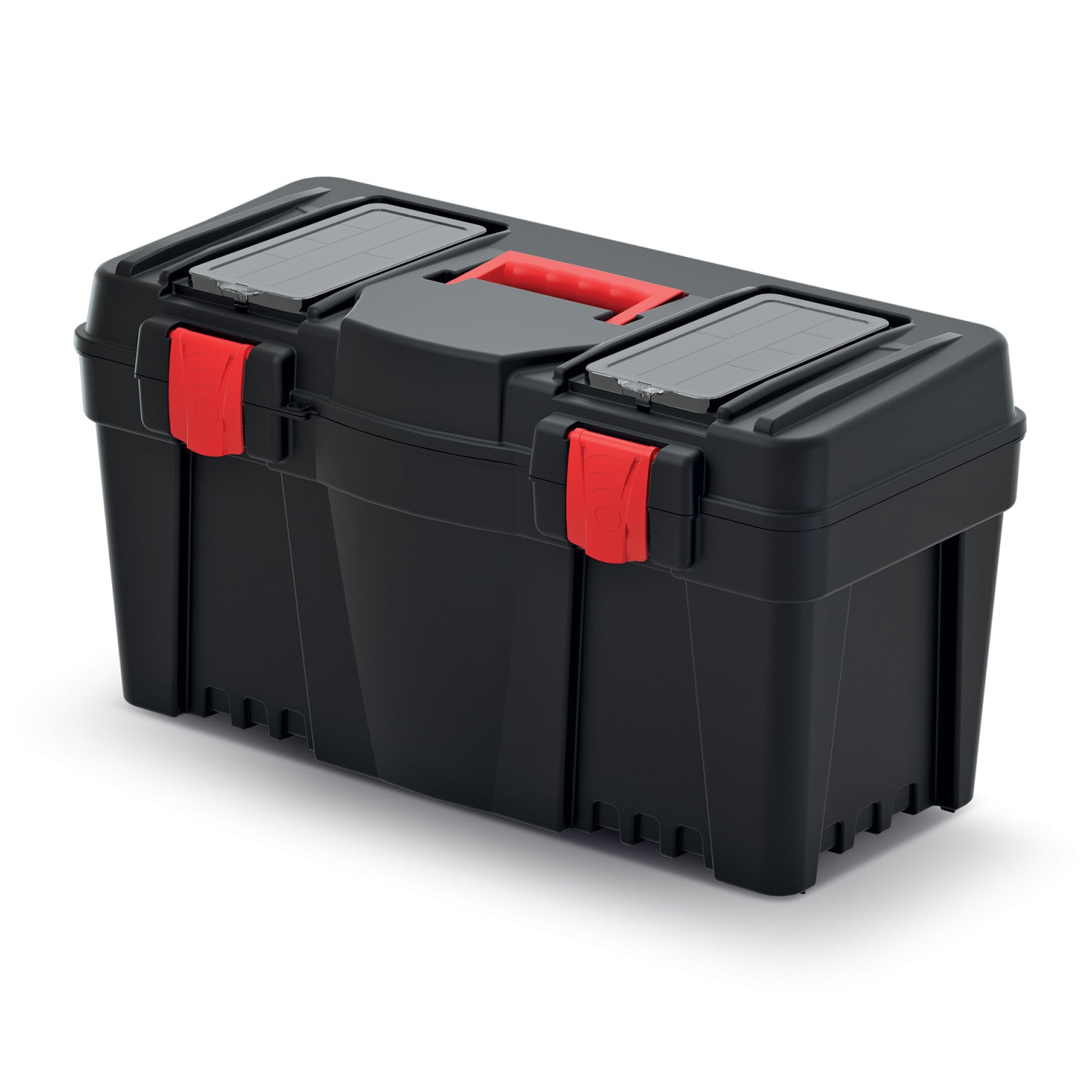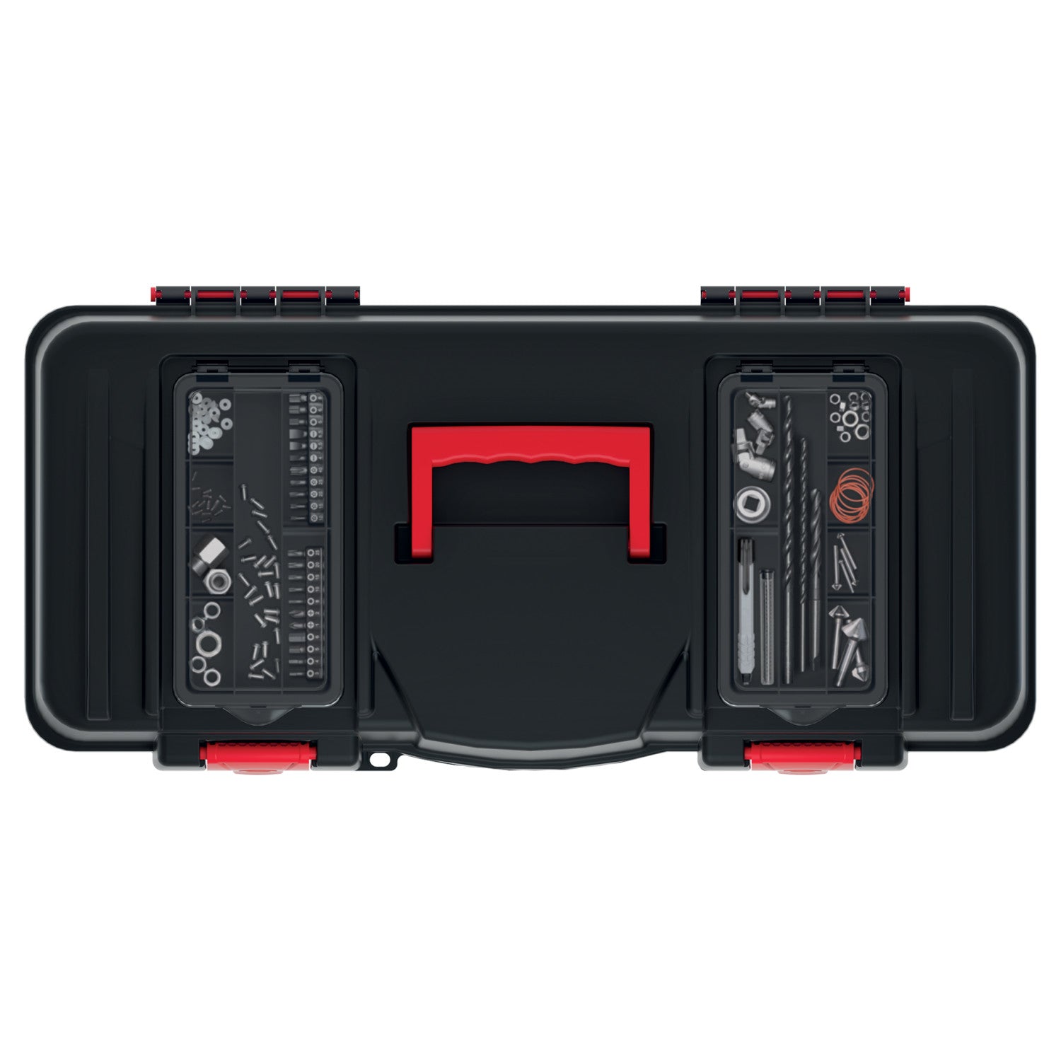 Cassetta degli attrezzi con spazio per i bit. Impugnatura ergonomica. Alloggiamento in polimero resistente. Serratura in ABS resistente. Capacità di carico fino a 21 kg.