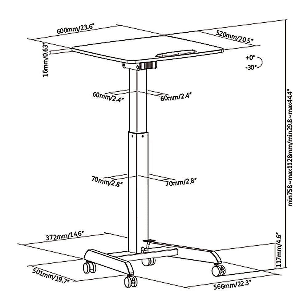 - Scrivania di alta qualità - Ampia superficie (60cm x 56cm) è ideale per il computer portatile o come area di lavoro - Grazie alla regolazione dell'altezza - da 76cm a 113 cm - il tavolo è adatto sia per lavorare in piedi che da seduti - Pedale per la regolazione dell'altezza - Ideale per ufficio e casa - La costruzione solida e stabile garantisce un uso a lungo termine - La superficie del tavolo è inclinabile fino a 30 gradi, che facilita il lavoro - Striscia antiscivolo sul piano del tavolo - Mobilità libera grazie alle rotelle - Con freno di stazionamento per una posizione sicura