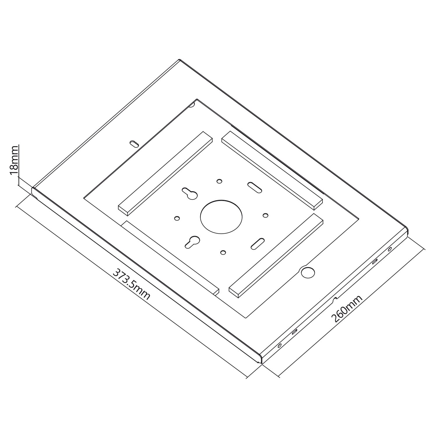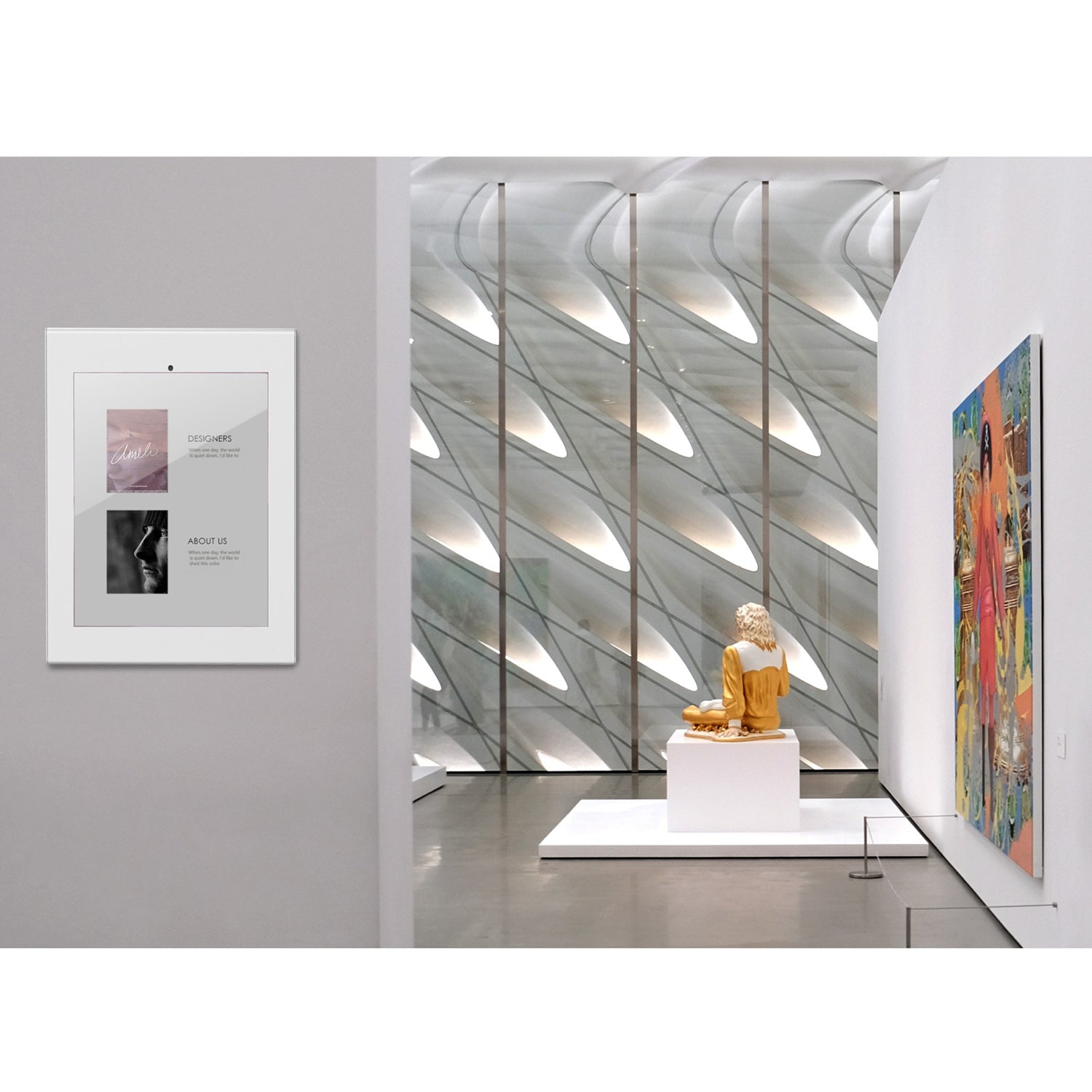 Porta tablet universale compatibile con 12.9", iPad Pro (Gen1/2). Il supporto è adatto al montaggio su una parete sia in verticale che in orizzontale. Il design elegante permette al supporto di fondersi facilmente con ogni ambiente..
