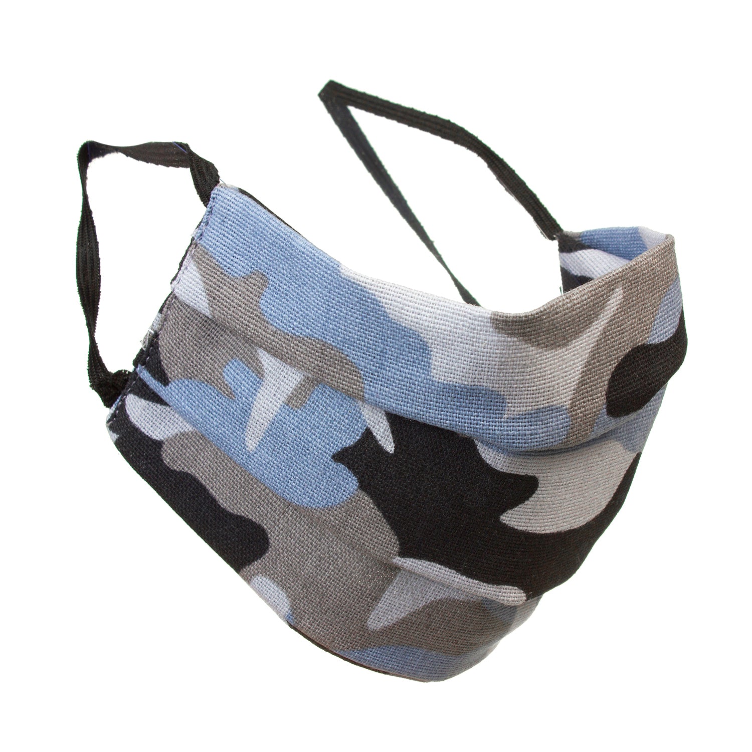 Maschera protettiva riutilizzabile con elastico di cotone - colore mimetico grigio e blu