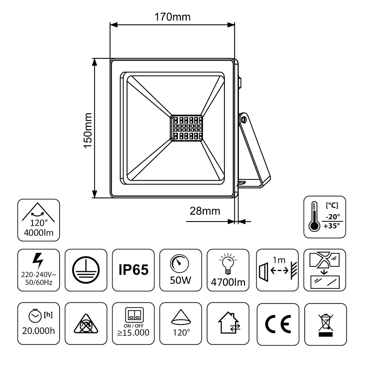 LAMPADA ALOGENA LED PROIETTORE 50W SLIM