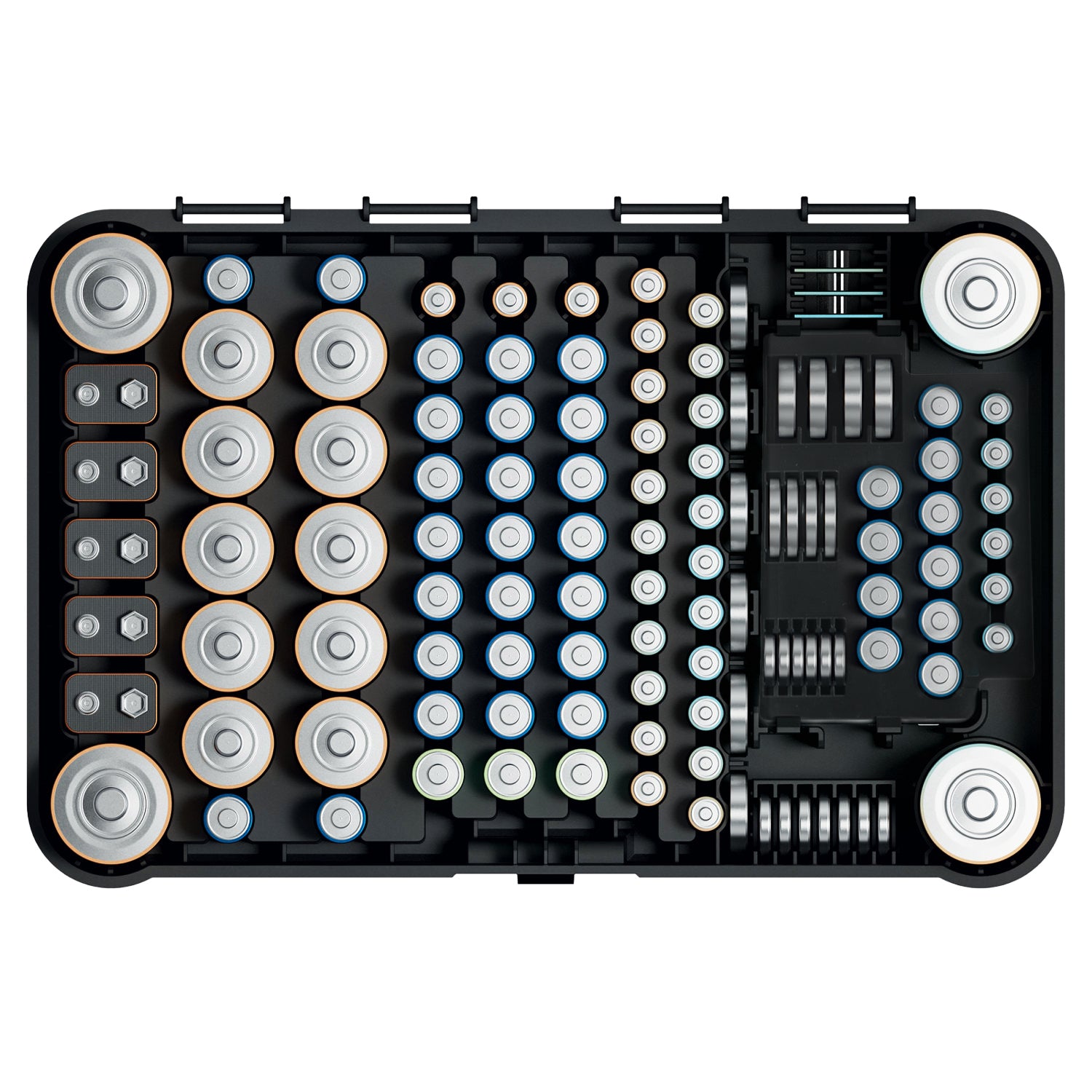 115 alloggiamenti per batterie consentono di riporre celle come: