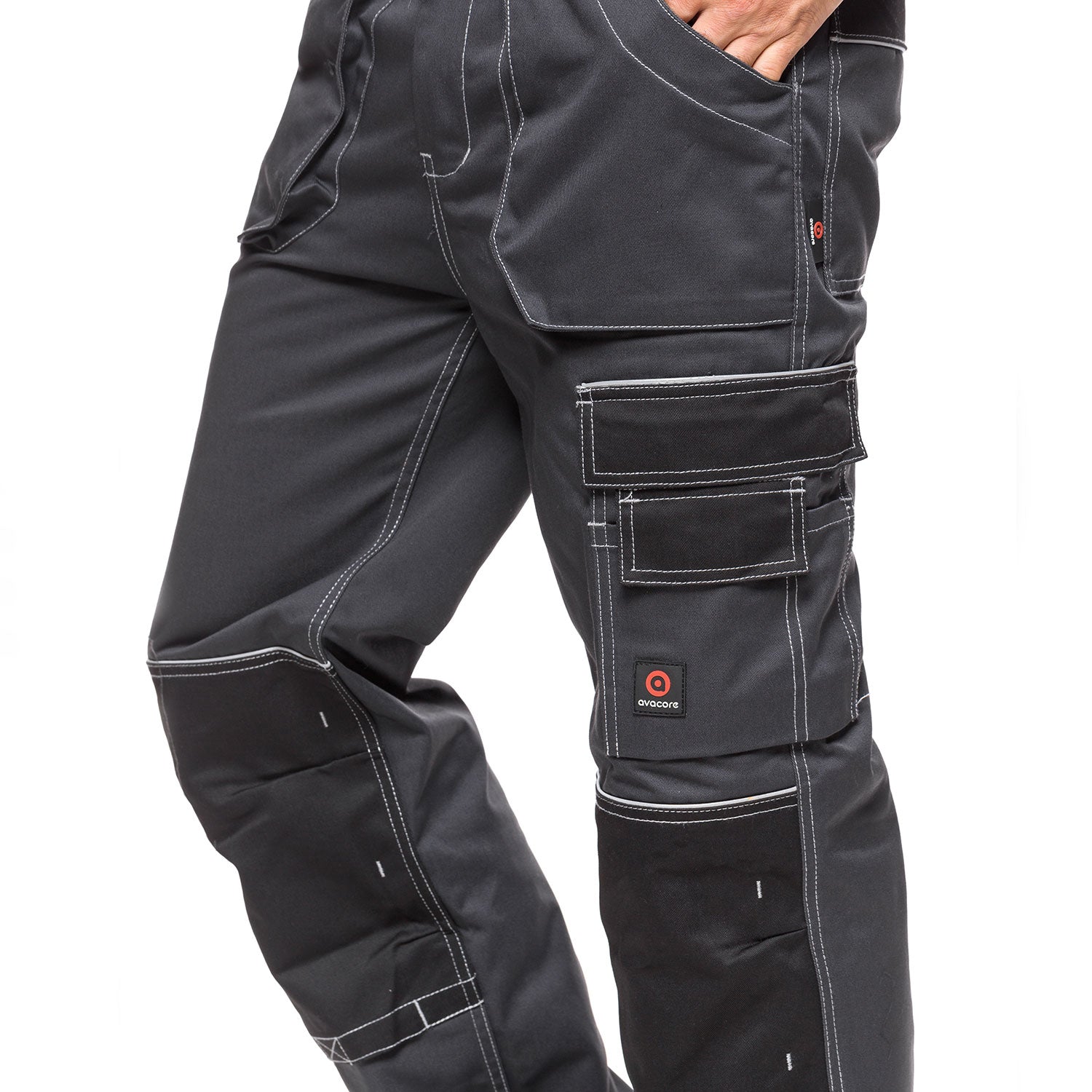 I pantaloni da lavoro Helios grigio-neri sono realizzati in tessuto resistente con doppie cuciture, tasche spaziose e multifunzionali tra cui una tasca per il cellulare e ginocchia rinforzate per un maggiore comfort sul lavoro.