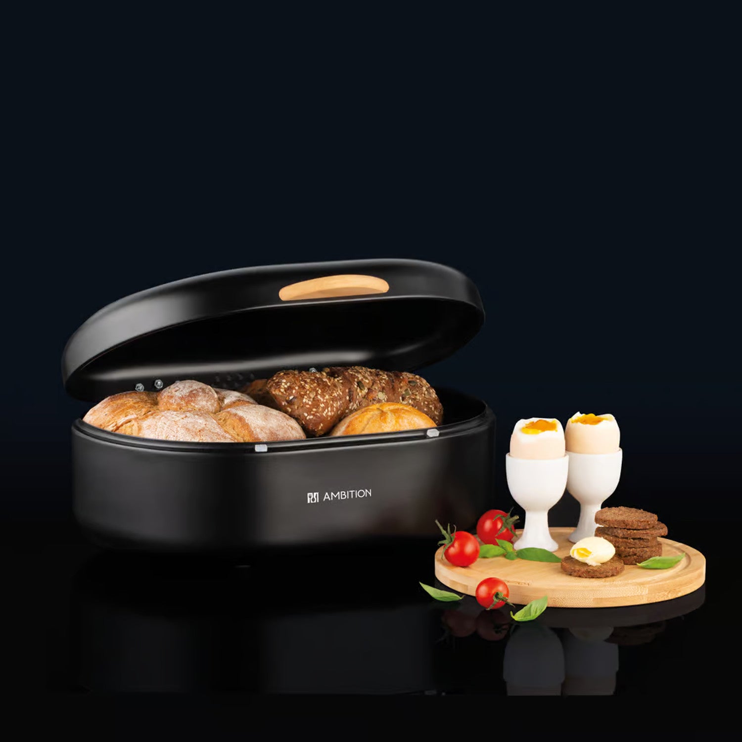 Portapane Ambition, acciaio, Contenitore per il pane con manico in legno, nero, 35 cm, Olivier